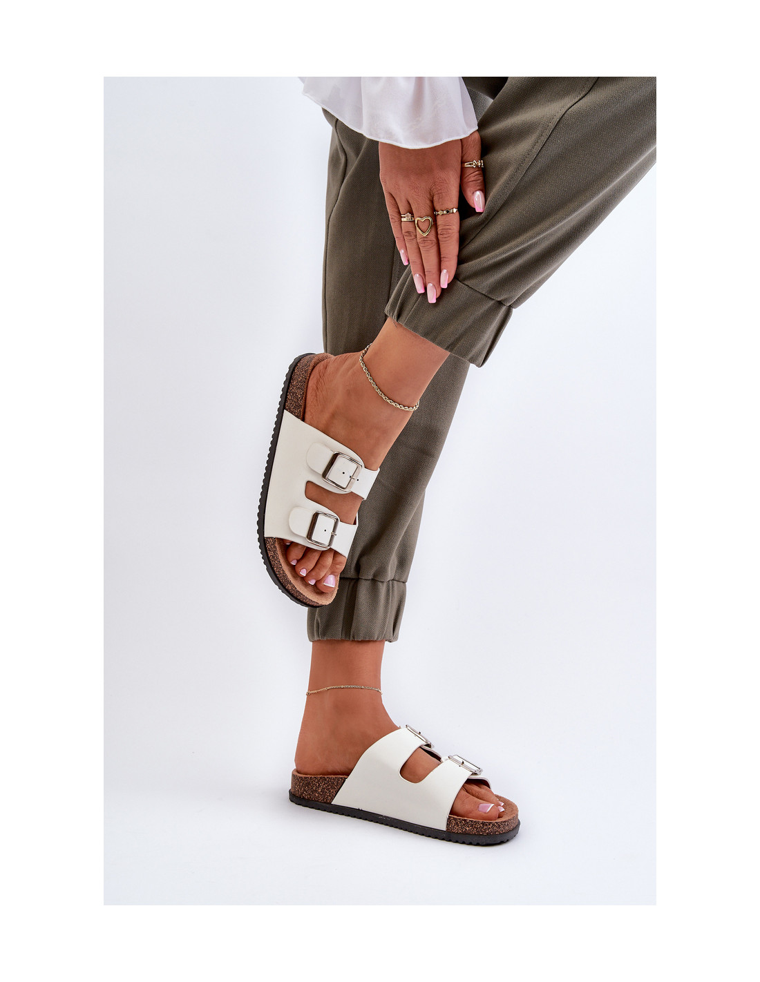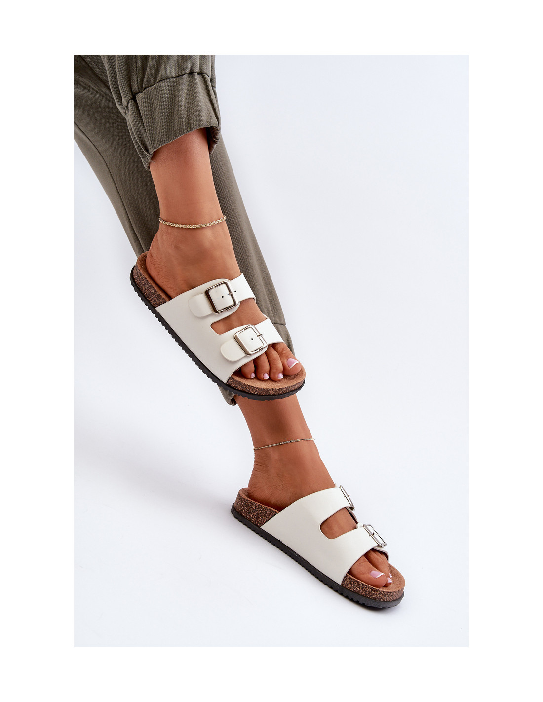 Moteriškos šlepetės su sagtimis Balta Oliena