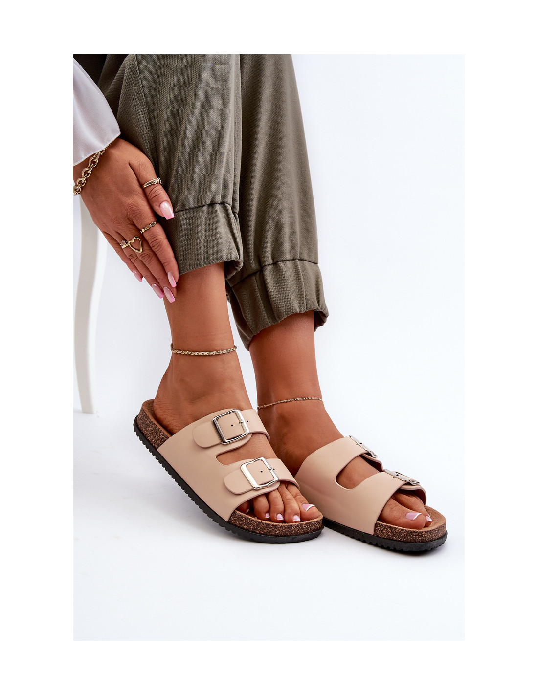 Smėlio spalvos moteriškos šlepetės su sagtimis Oliena