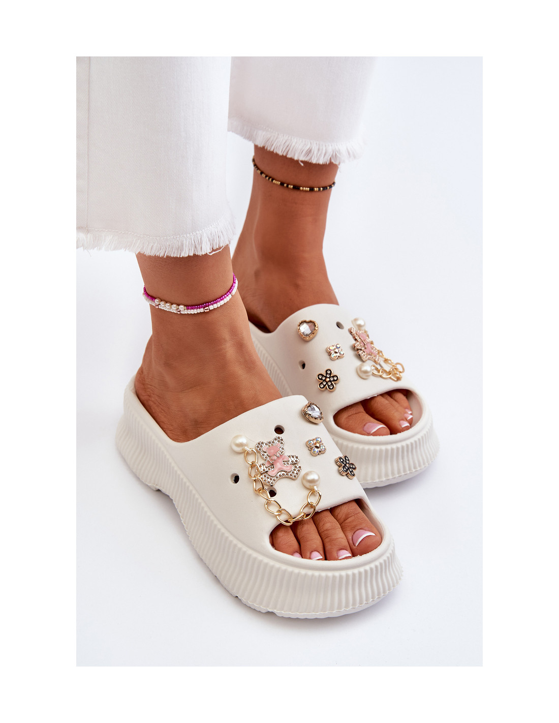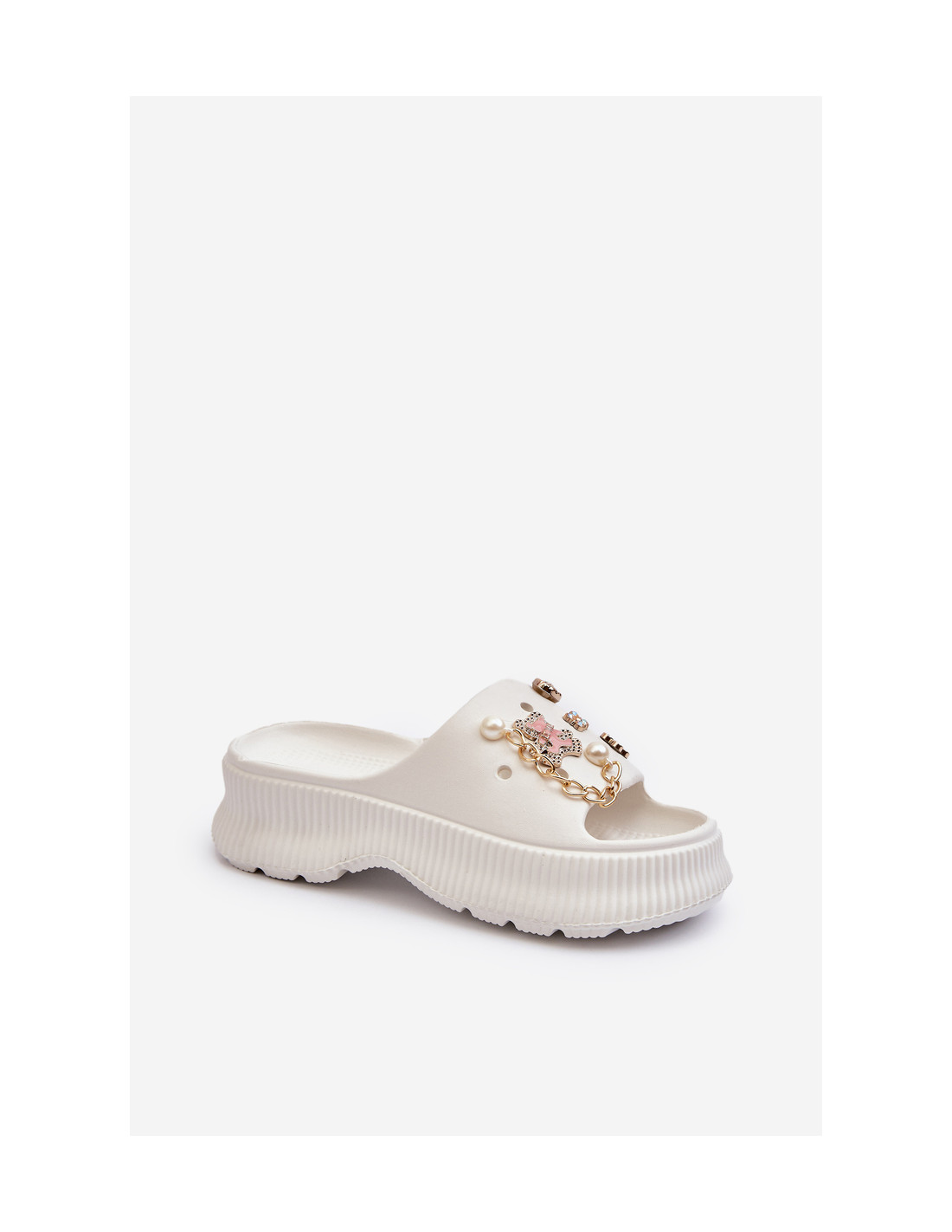 Moteriškos putplasčio šlepetės su dekoracijomis, balta Afariana