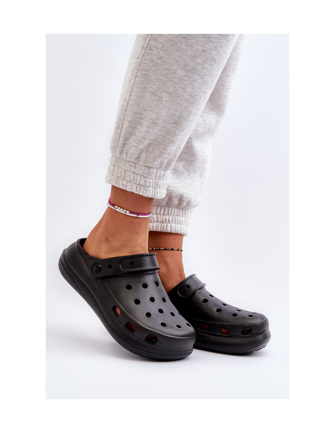 Moteriškos šlepetės iš lengvos, putplasčio medžiagos. Kilnojamas dirželis užtikrina stabilumą ir apsaugo pėdą nuo slydimo. Platforma užtikrina komfortą dėvint. Papildomos skylės viršutinėje dalyje užtikrina pakankamą oro srautą, užtikrinantį komfortą net karštomis dienomis. Renkantis dydį, vadovaukitės dydžių lentele.
