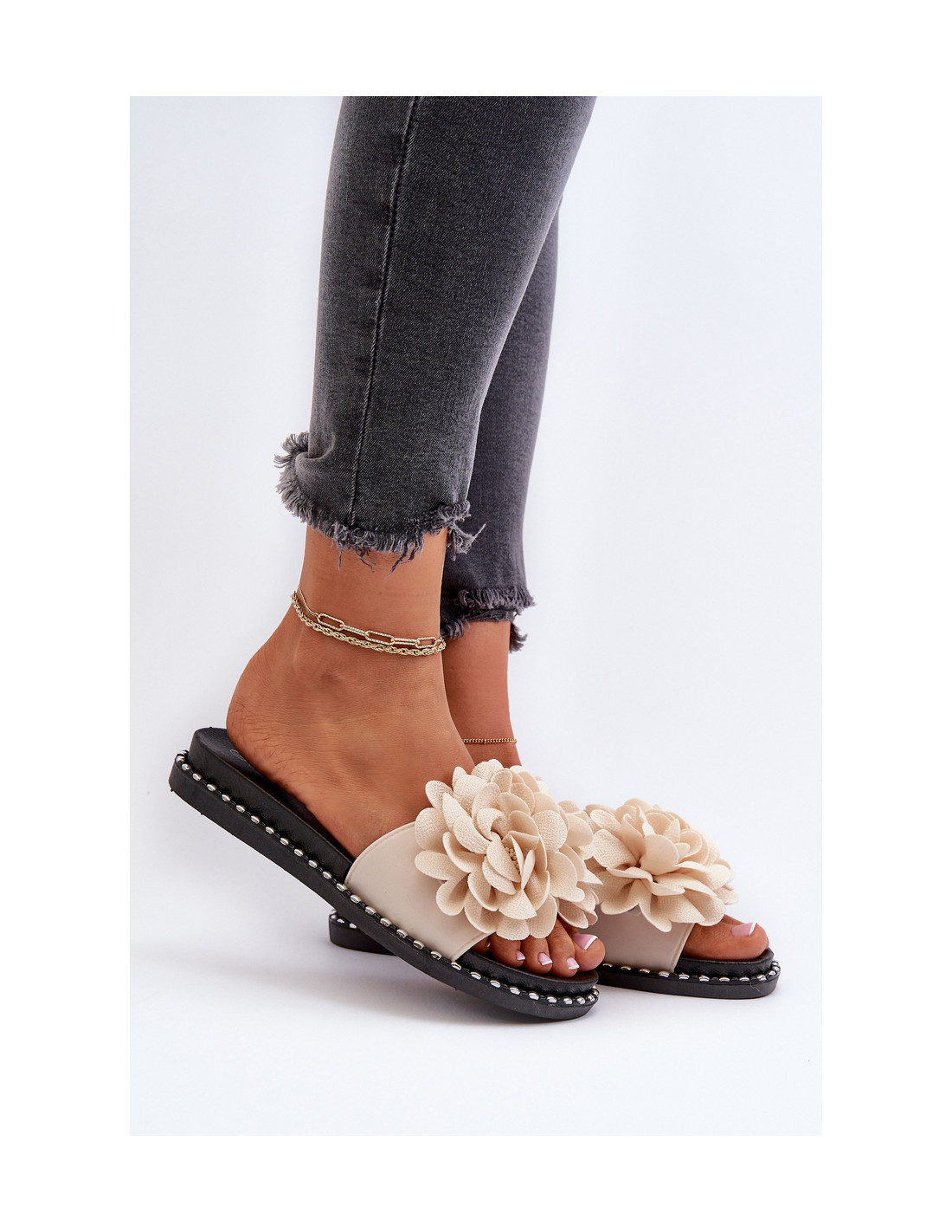 Moteriškos šlepetės, dekoruotos gėlėmis, smėlio spalvos Cellanen