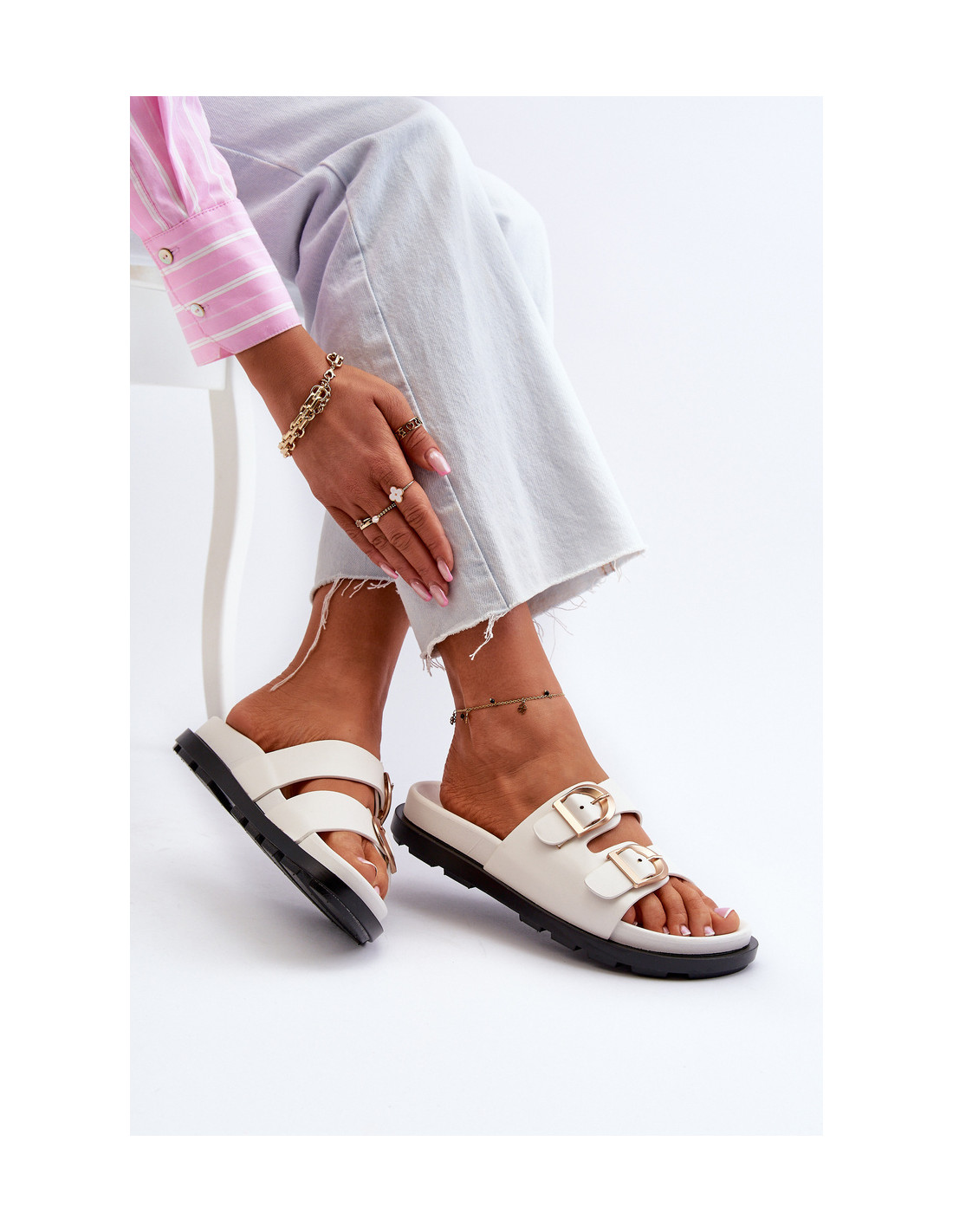 Klasikiniai moteriški šlepetės su platforma. Pagaminta iš eko odos. Reguliuojami dirželiai su sagtimis priekyje, leidžiantys geriau priglusti prie pėdos. Platforma užtikrina stabilumą ir patogumą nešiojant visą dieną. Puikiai tinka vasaros pasivaikščiojimams ar vakarinėms išvykoms. Renkantis dydį, vadovaukitės dydžių lentele.