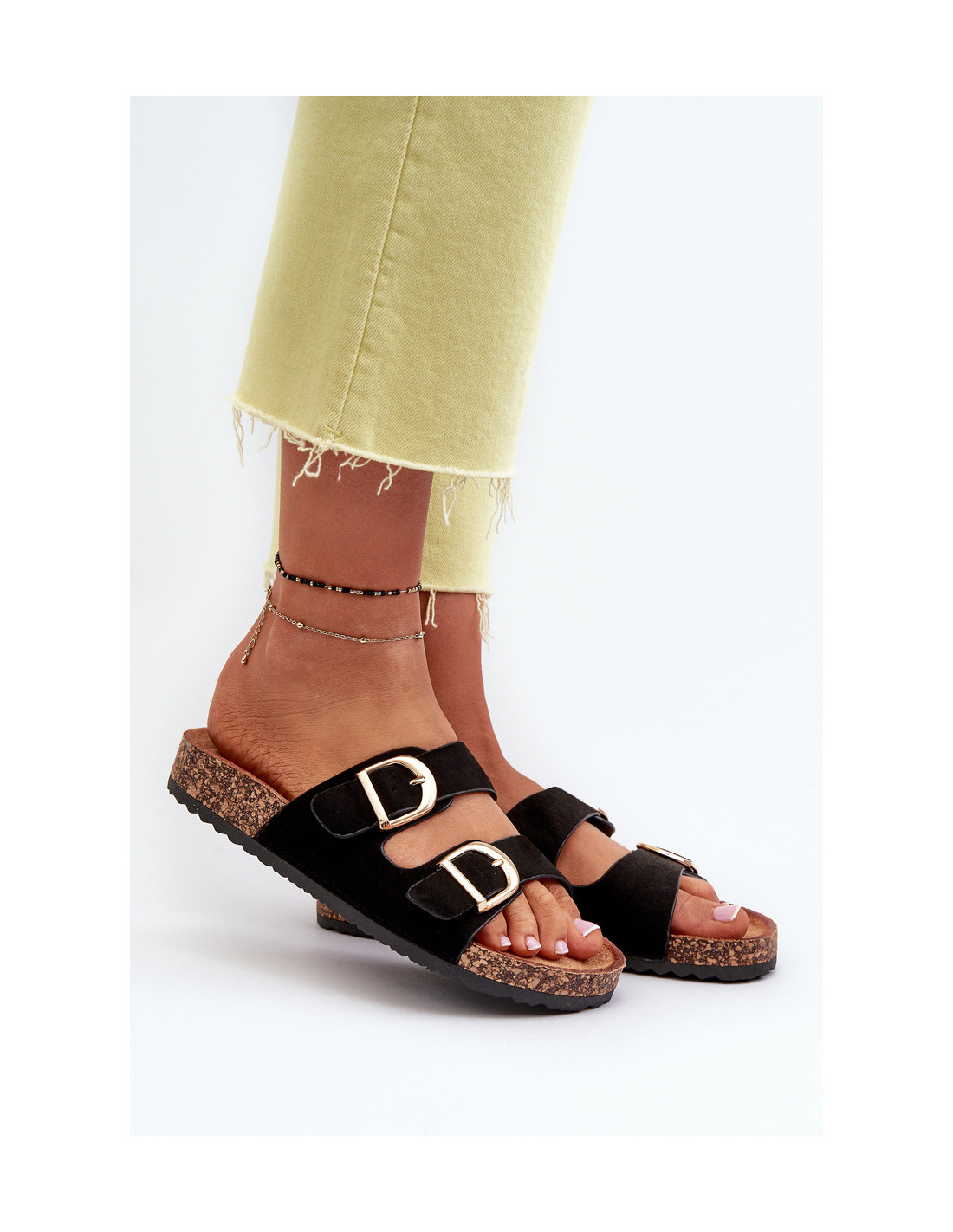 Moteriškos šlepetės pagamintos iš tekstilės medžiagos. Jie turi dekoratyvines sagtis su reguliuojamais dirželiais. Šis modelis montuojamas ant kamštinės platformos. Tobula avalynė vasaros sezonui. Šios šlepetės turi profiliuotą, patogų vidpadį. Jūs tikrai turėtumėte juos turėti! Renkantis dydį, vadovaukitės dydžių lentele.