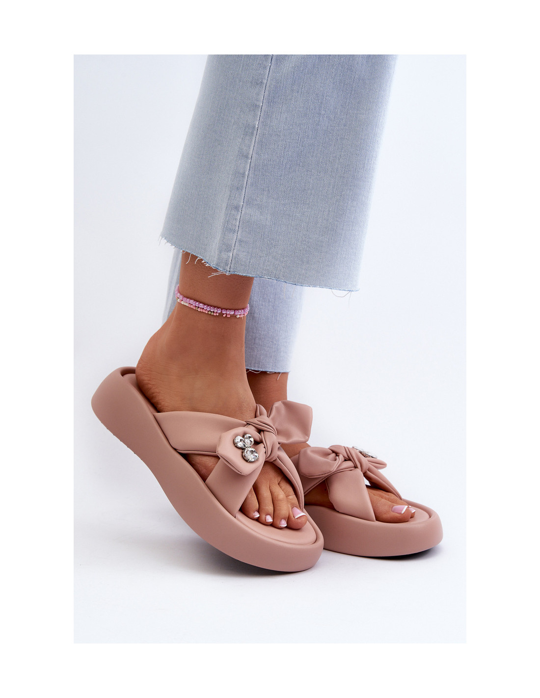 Moteriškos odinės šlepetės ant platformos Pink GOE NN2N4109