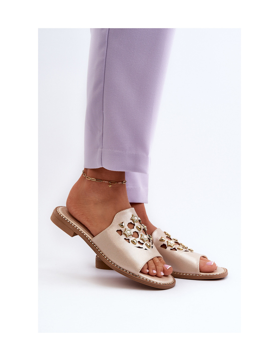 Blizgios moteriškos šlepetės su dekoracijomis S.Barski KV27-063 Auksinis