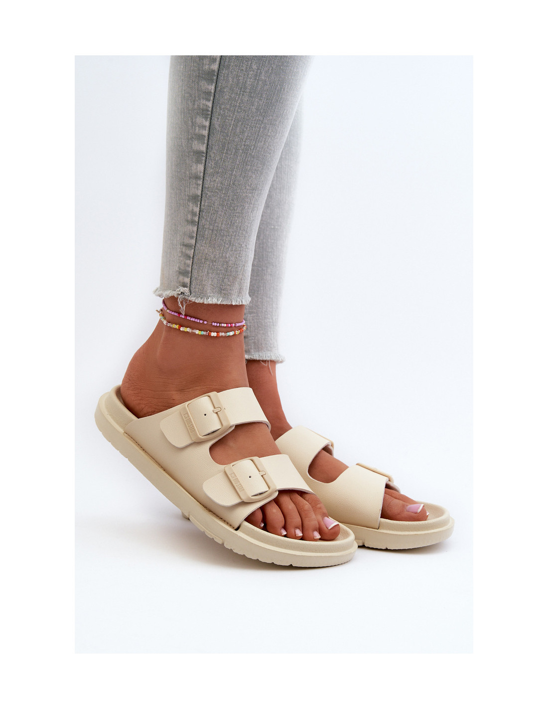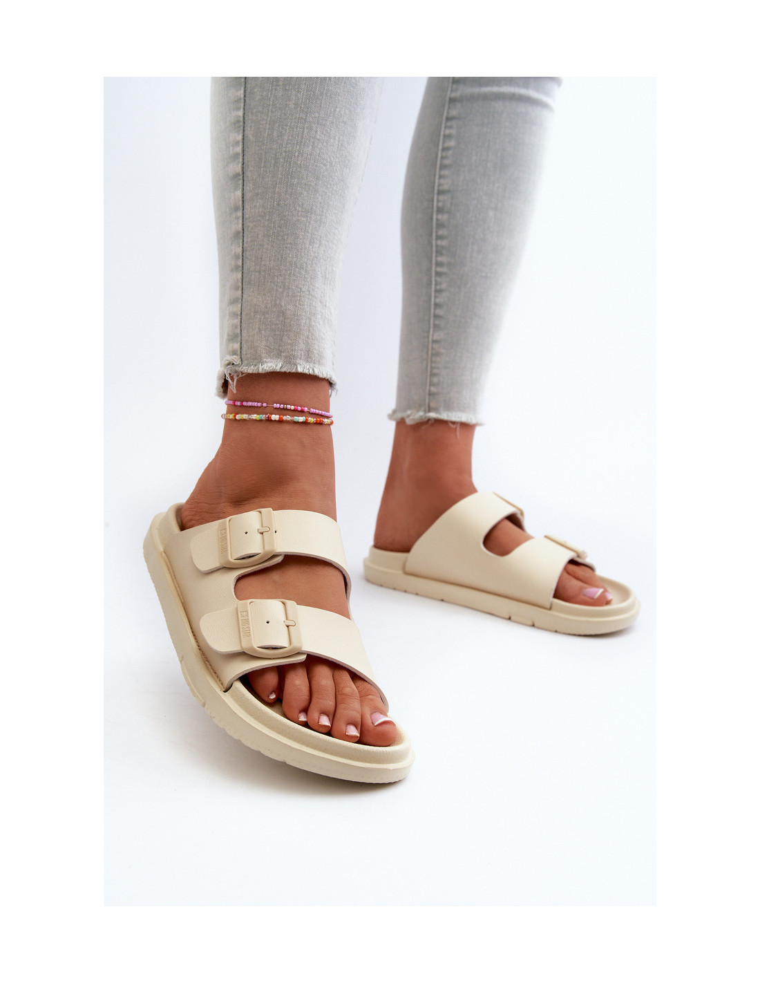 Moteriškos lengvos putplasčio šlepetės su sagtimis Big Star NN274A752 smėlio spalvos
