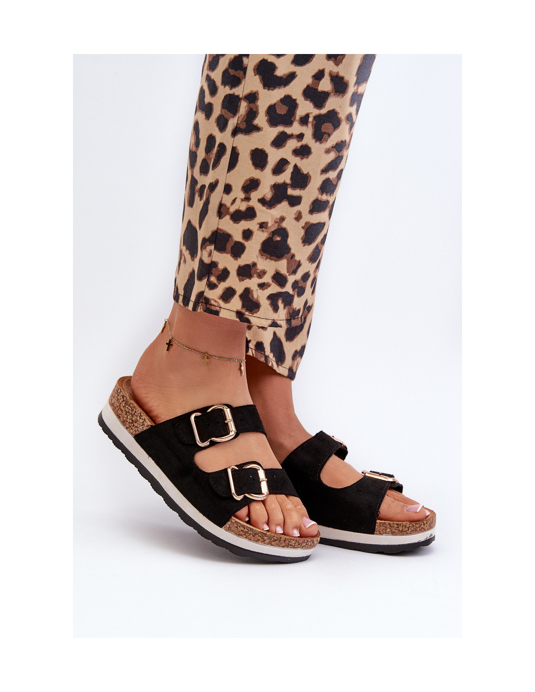 Moteriškos platforminės šlepetės iš ekologiškos zomšos – tai stiliaus ir patogumo derinys. Du reguliuojami dirželiai, dekoruoti auksinėmis sagtimis, kurios ne tik suteikia elegancijos, bet ir leidžia lengvai prisitaikyti prie individualių poreikių. Profiliuotas vidpadis suteikia pėdai komfortą ir atramą, todėl puikiai tinka ilgiems pasivaikščiojimams ar aktyvioms dienoms. Renkantis dydį, vadovaukitės dydžių lentele.