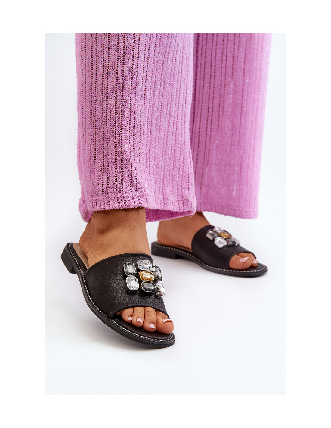 Moteriškos plokščios basutės su dekoracijomis. Pagaminta iš aukštos kokybės medžiagų. Minkštas odinis vidpadis užtikrina patogų nešiojimą visą dieną. Dėl elegantiško dizaino jie yra puikus pasirinkimas įvairioms progoms. Renkantis dydį, vadovaukitės dydžių lentele.