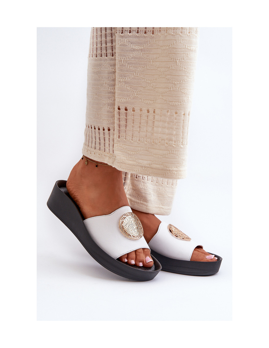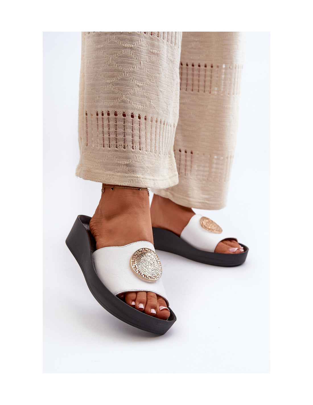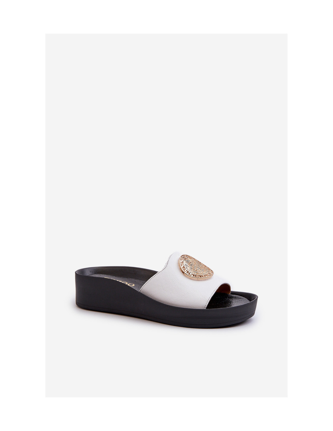 Elegantiški šlepetės iš aukštos kokybės natūralios odos yra puikus pasirinkimas moterims, kurios vertina stilių ir patogumą. Sumontuoti ant pleišto, jie suteikia ne tik papildomo aukščio, bet ir stabilumo bei atramos pėdoms visą dieną. Minkštas vidpadis prisitaiko prie pėdos formos, užtikrina išskirtinį dėvėjimo komfortą. Papildomas privalumas – auksinė detalė, kuri tikrai pritrauks dėmesį. Šios šlepetės puikiai tiks tiek kasdieniam naudojimui, tiek ypatingoms progoms, papildys bet kokį stilių – nuo kasdieninio iki formalesnio. Renkantis dydį, vadovaukitės dydžių lentele.