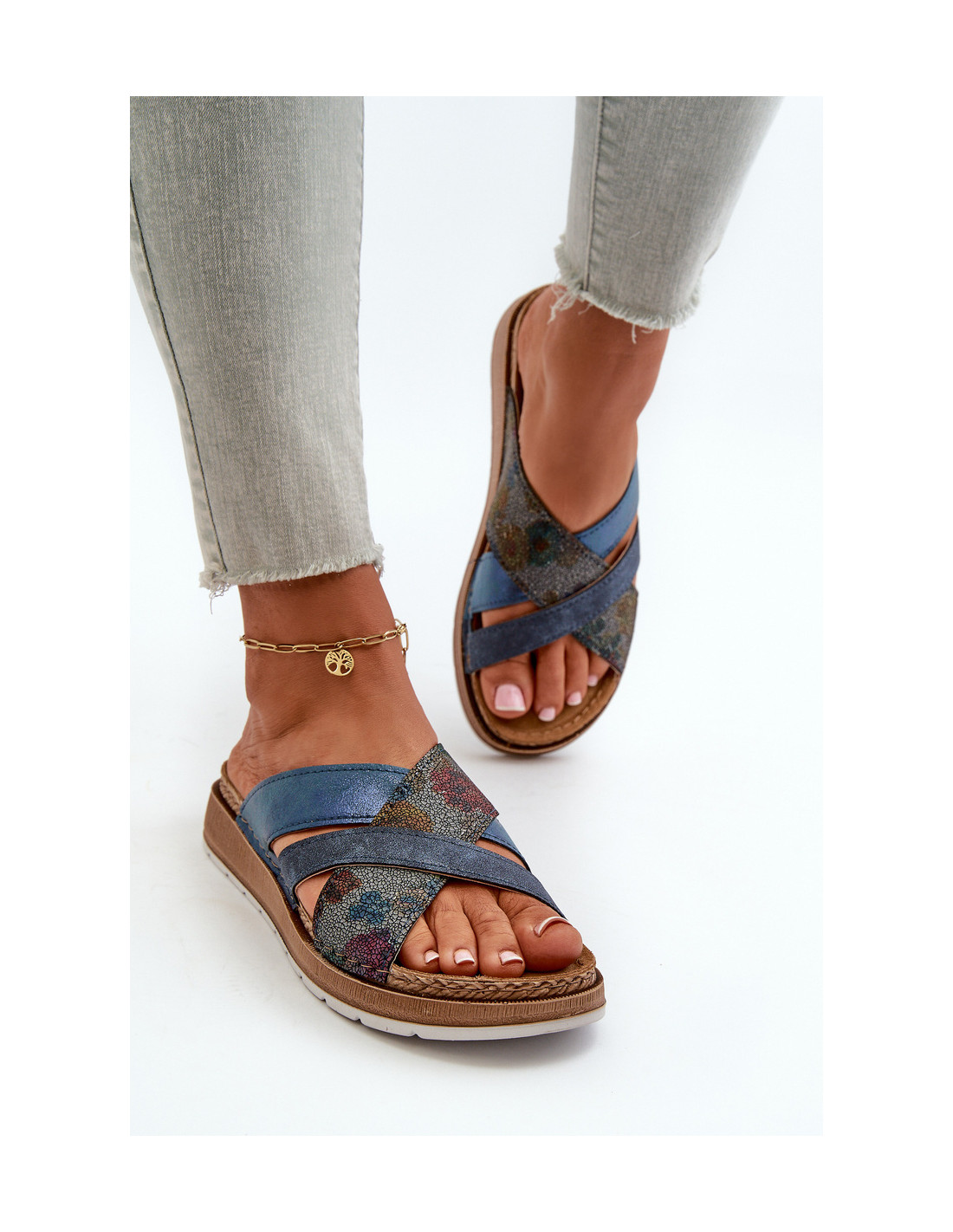 Inblu prekės ženklo moteriškos šlepetės. Nustatykite ant subtilaus pleišto. Pagaminti iš aukštos kokybės medžiagų, jie yra patvarūs ir estetiški. Profiliuotas vidpadis, sukurtas atsižvelgiant į anatominę pėdos formą, pagamintas iš natūralios odos, kuri užtikrina optimalią atramą ir komfortą nešiojant. Renkantis dydį, vadovaukitės dydžių lentele.