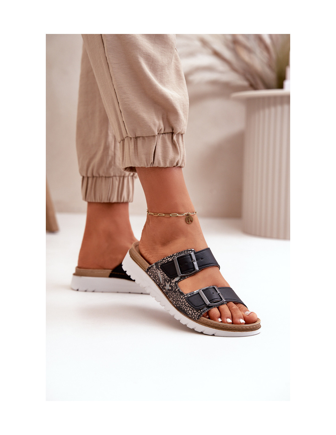 Patogūs INBLU prekės ženklo moteriški šlepetės. Viršus pagamintas iš eko odos. Slip-on modelis. Vidpadis profiliuotas, pritaikytas anatominei pėdos formai, pagamintas iš natūralios zomšos. Naudojant atitinkamas technologijas ir medžiagas, šlepetės užtikrina aukštą komfortą ir patogumą. Renkantis dydį, vadovaukitės dydžių lentele.