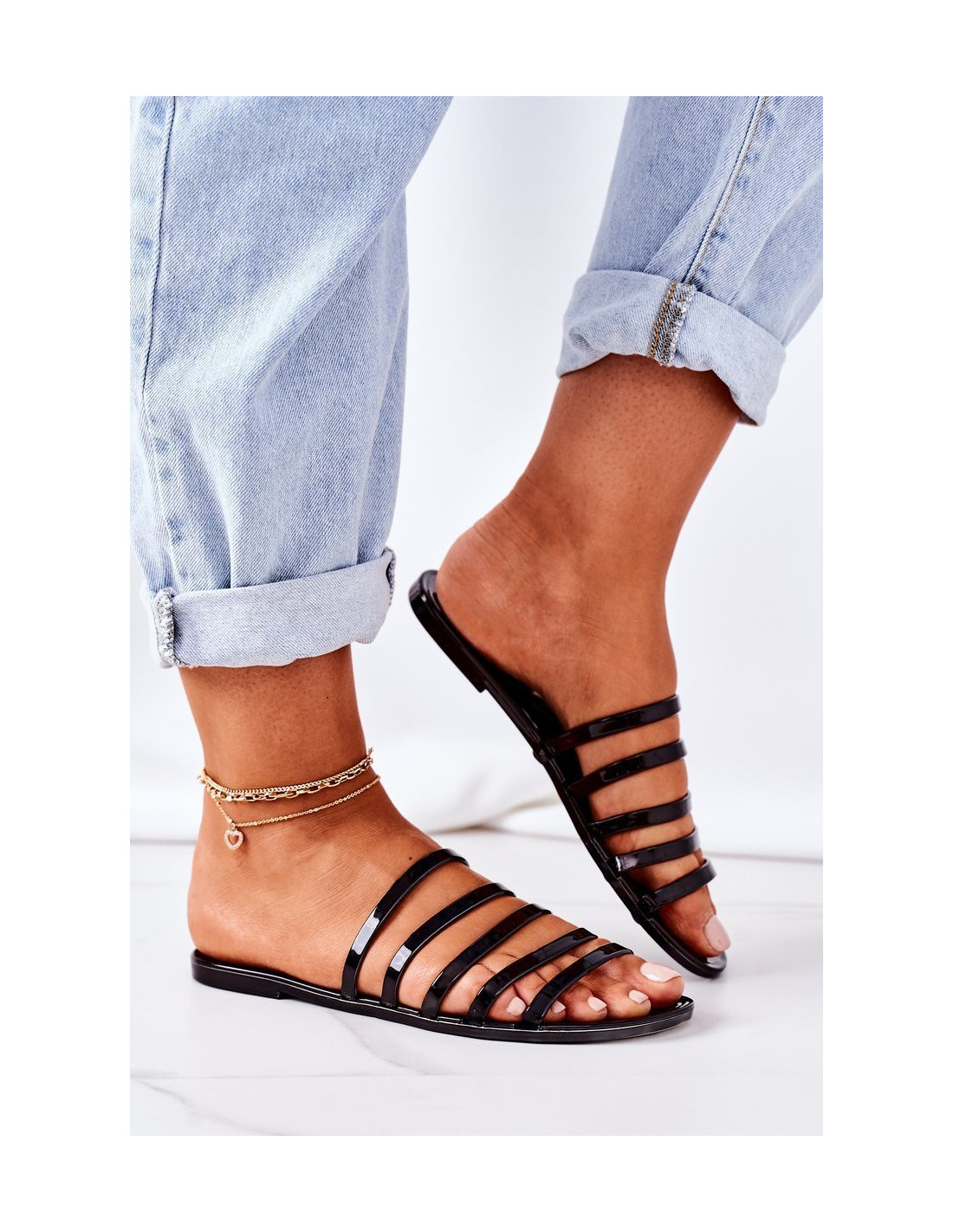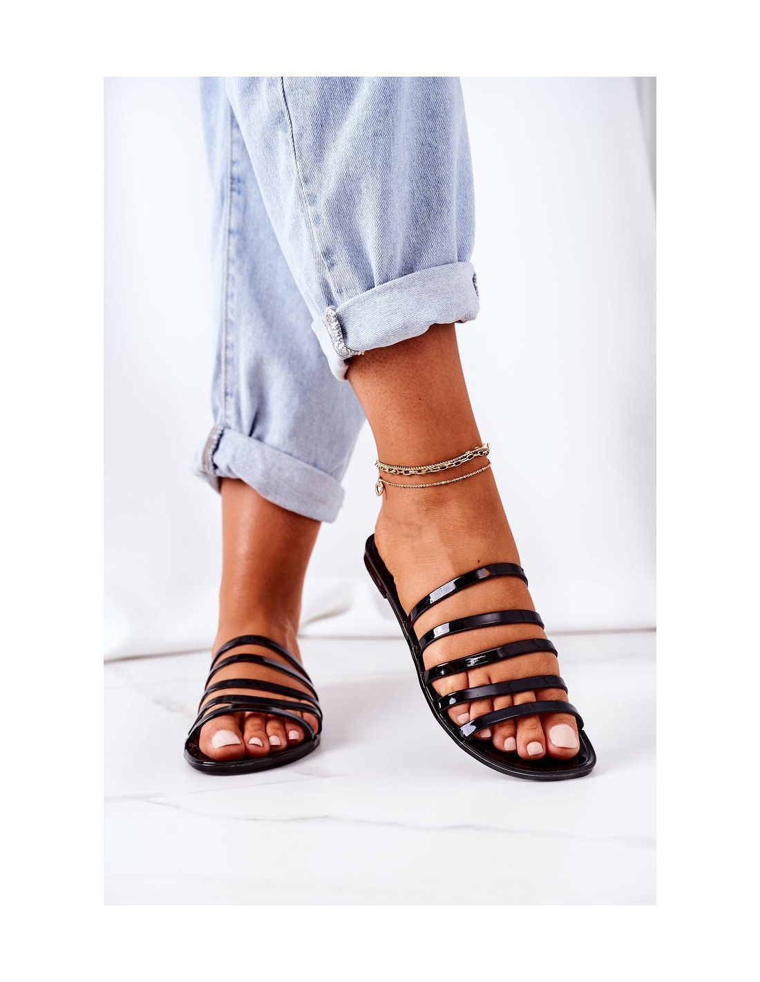 Moteriškos šlepetės iš blizgios guminės medžiagos. Renkantis dydį, naudokite dydžių lentelę.