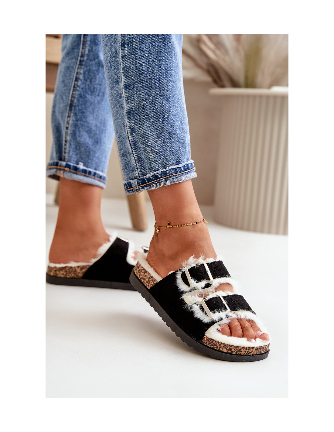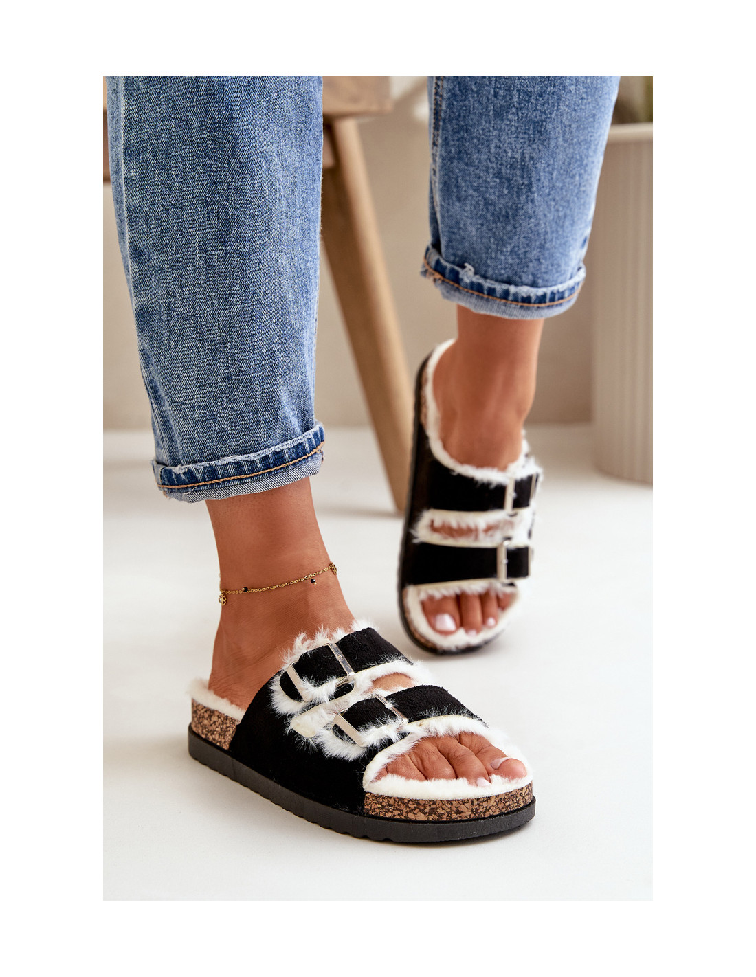 Moteriškos šlepetės apšiltintos minkštu kailiu, užtikrinančiu šilumą ir komfortą šaltesnėmis dienomis. Jie turi du reguliuojamus dirželius su sagtimis, kurios puikiai priglunda prie pėdos. Pastatytos ant platformos, jos padidina aukštį ir užtikrina stabilumą bei patogumą dėvėti. Puikiai tinka atsipalaidavimo akimirkoms namuose. Renkantis dydį, vadovaukitės dydžių lentele.
