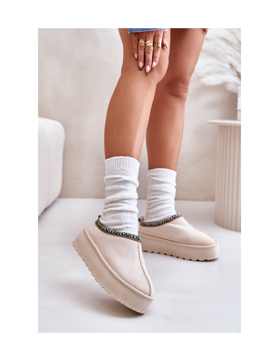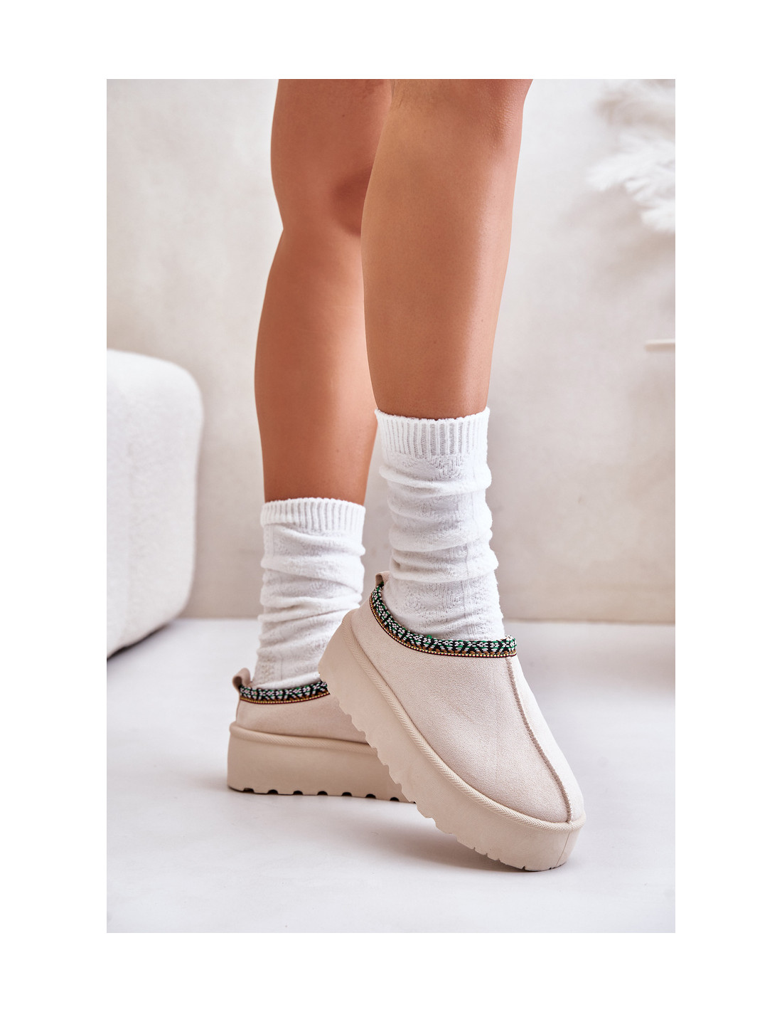 Madingos moteriškos platforminės šlepetės, kuriose patogumas derinamas su šiuolaikišku stiliumi. Viršutinė viršutinė dalis dekoruota siuvinėjimais, suteikiančiais jiems nepakartojamo žavesio. Pastatykite ant didžiulės platformos, kuri puikiai izoliuoja jus nuo šaltos žemės. Puikiai tinka nešioti namuose ir lauke. Renkantis dydį, vadovaukitės dydžių lentele.