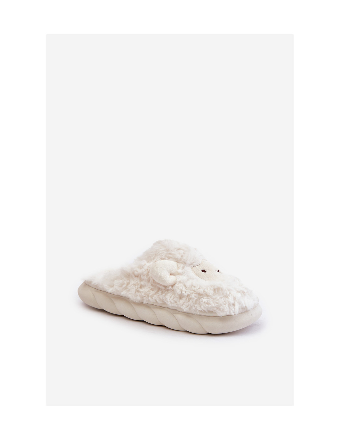Baltos „Phaia“ moteriškos kailio šlepetės su avies motyvu