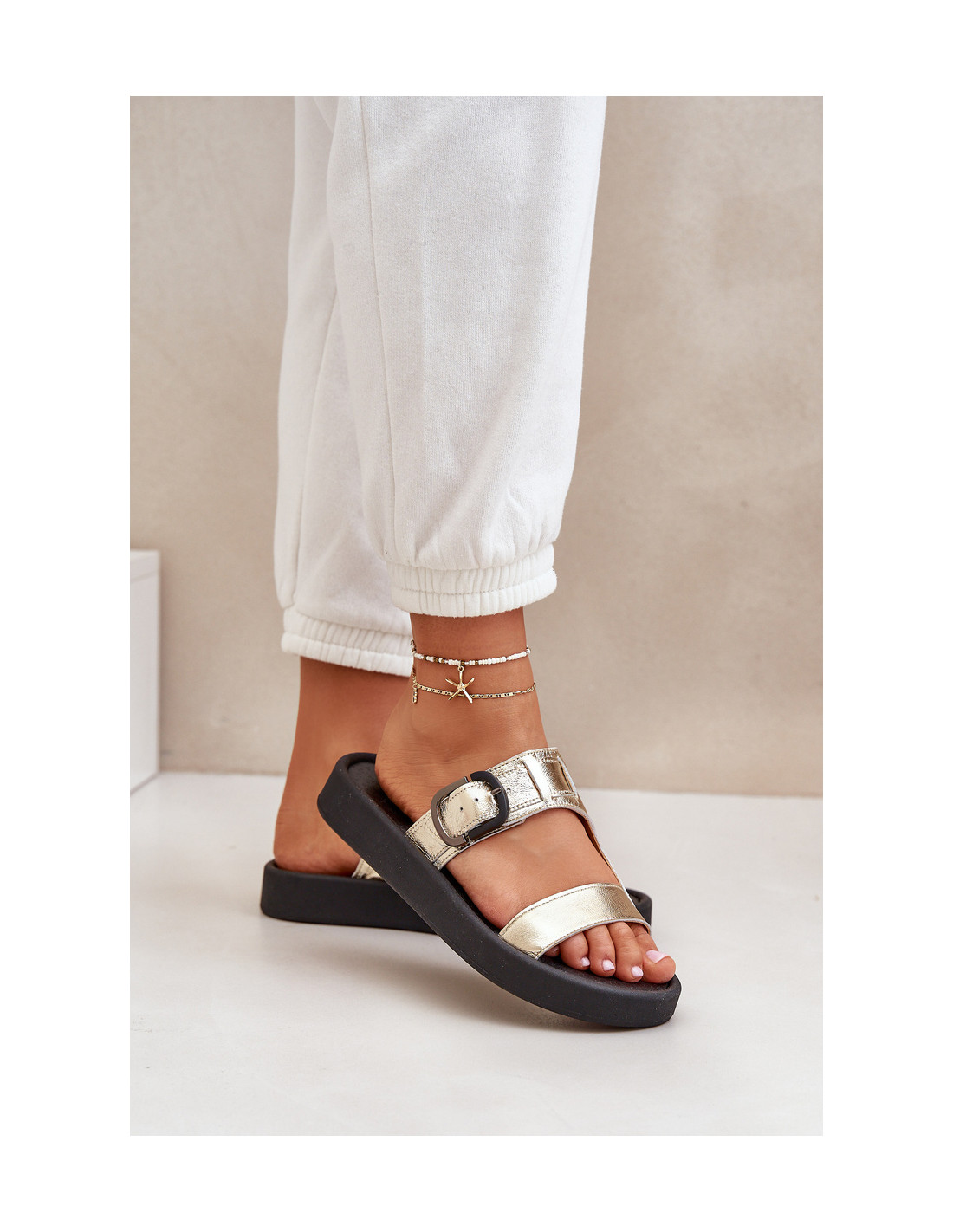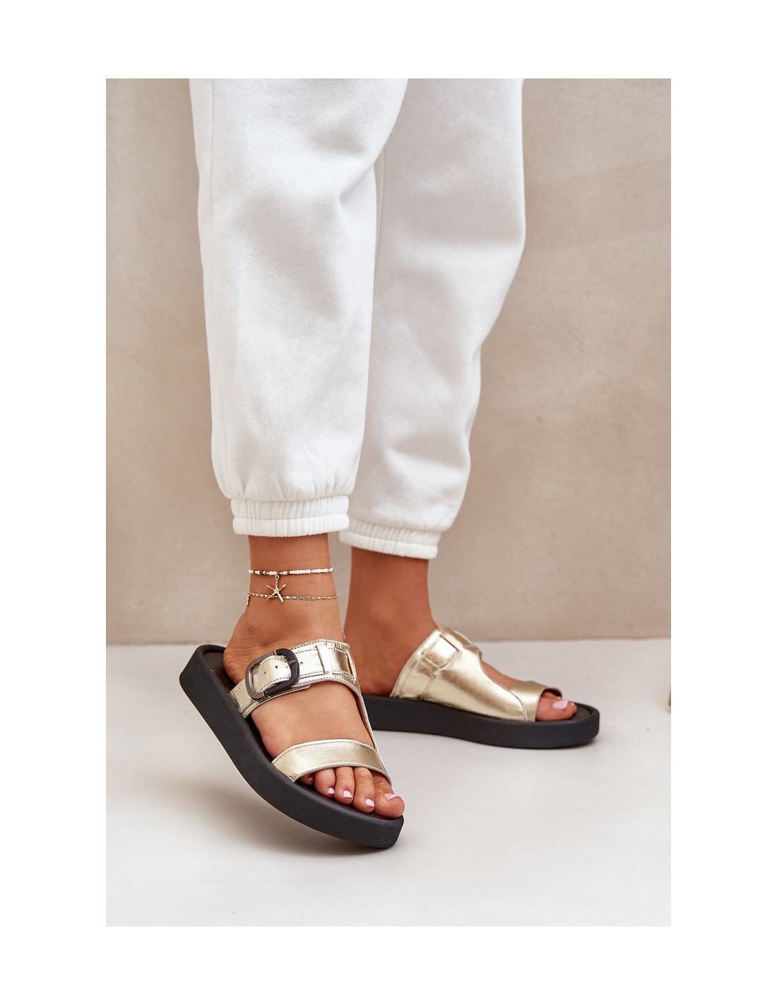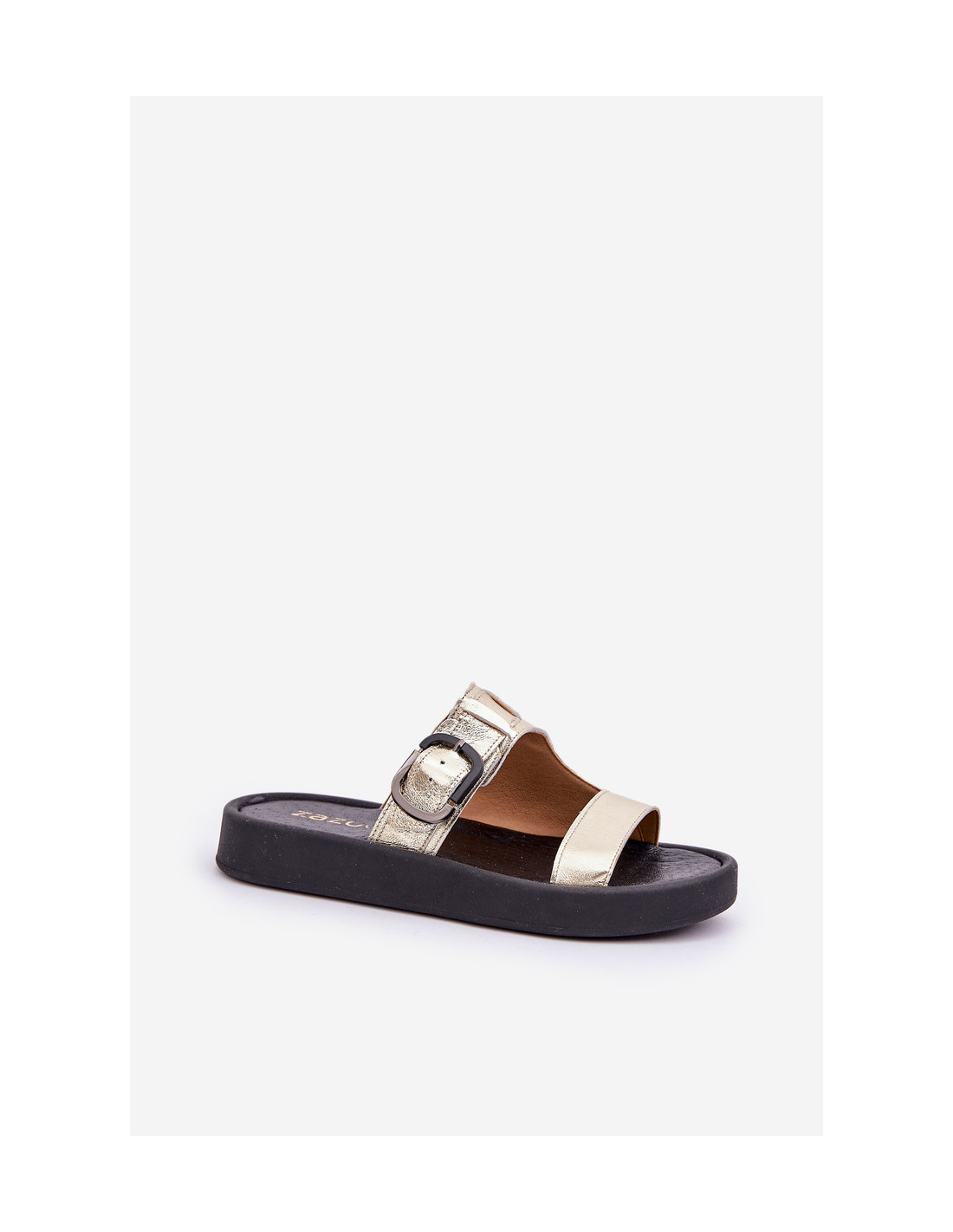 „Zazoo 3024“ auksinės spalvos moteriškos odinės platformos šlepetės