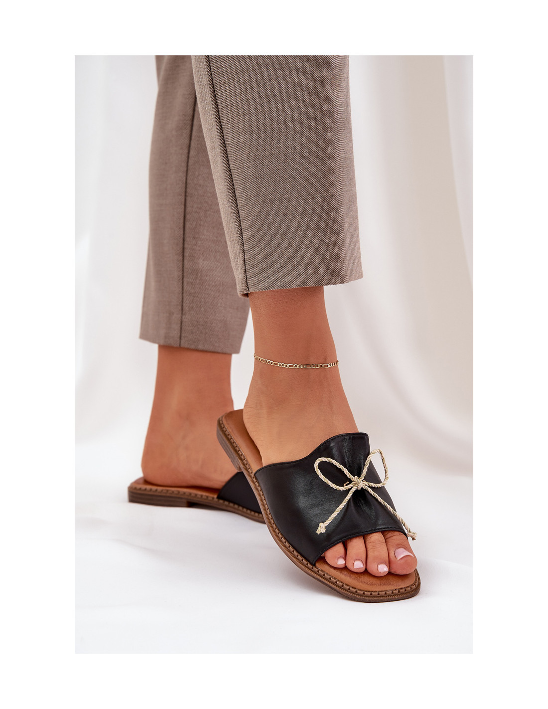 Plokščiapadžiai šlepetės su dekoratyviniu lankeliu juodu Deonelis