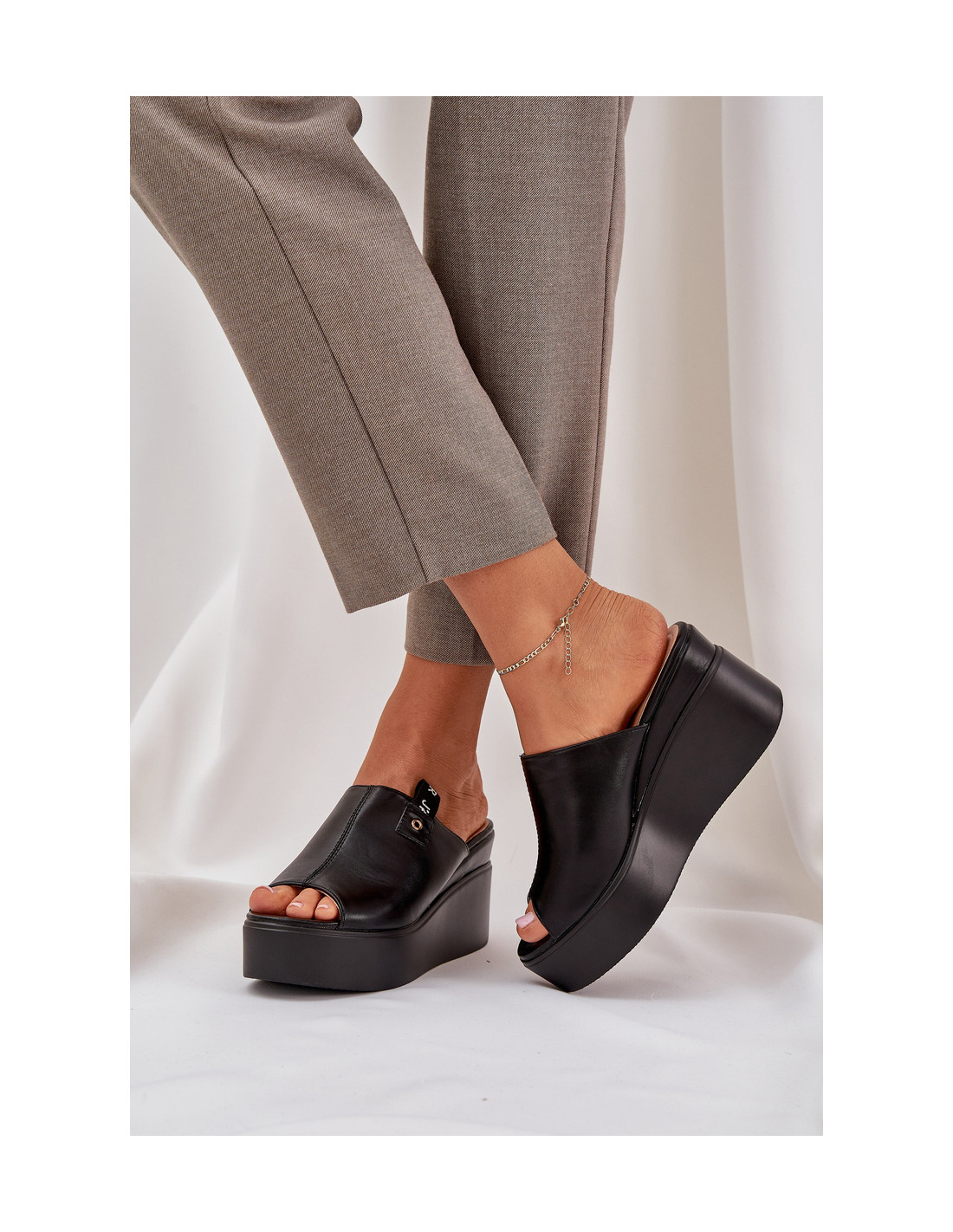 Moteriškos eko odos šlepetės – puikus pasirinkimas karštomis dienomis, derinančios komfortą ir madingą išvaizdą. Platforma ir pleištas suteikia subtilaus aukščio ir papildomo stabilumo neprarandant komforto. Modelis yra ypač lengvas, todėl puikiai tinka pasivaikščiojimams ar atostogų kelionėms. Renkantis dydį, vadovaukitės dydžių lentele.