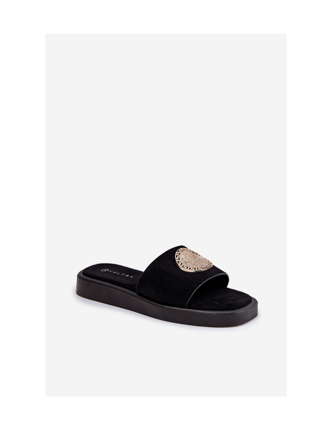 Moteriškos šlepetės, pagamintos iš ekologiškos zomšos. Nustatyti ant platformos. Auksinė juostelė suteikia subtilios elegancijos, todėl jos yra puikus pasirinkimas vasaros vakarams. Jie taip pat puikiai papildo laisvalaikio aprangą, derindami stilių su patogumu. Renkantis dydį, vadovaukitės dydžių lentele.