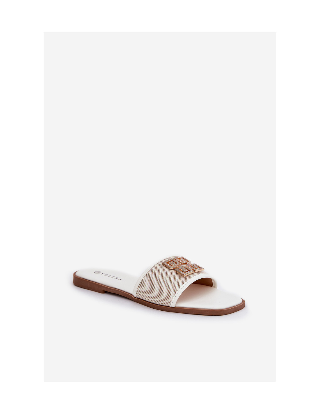 Elegantiškos moteriškos šlepetės su puošmena ant plokščio kulno, balta Lovehia