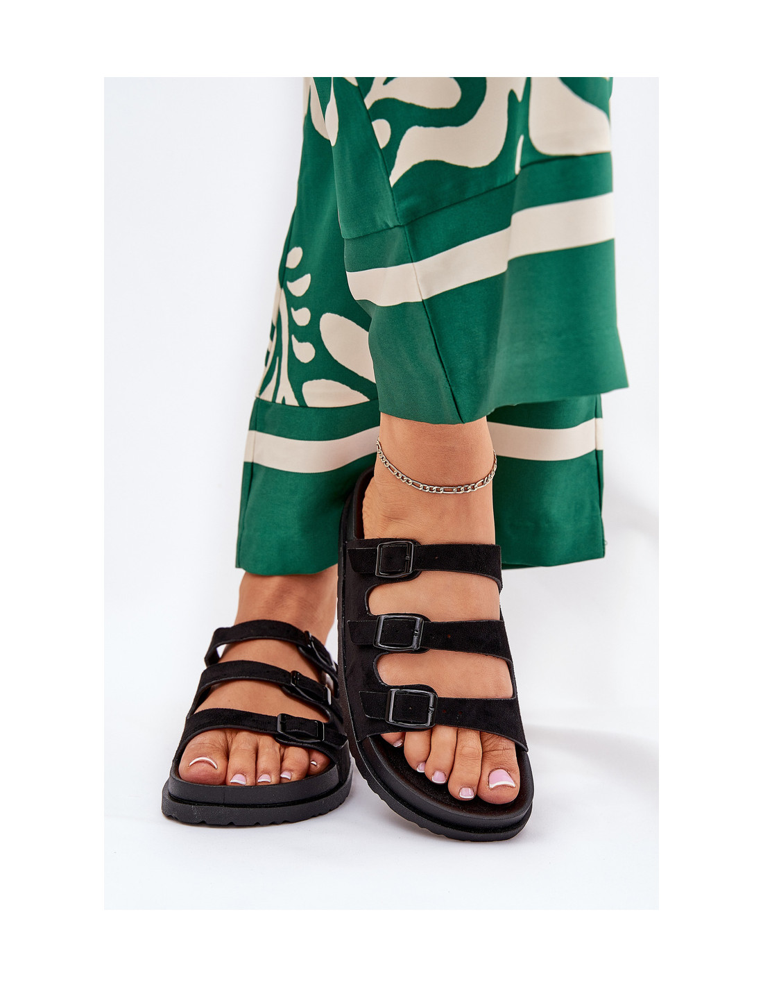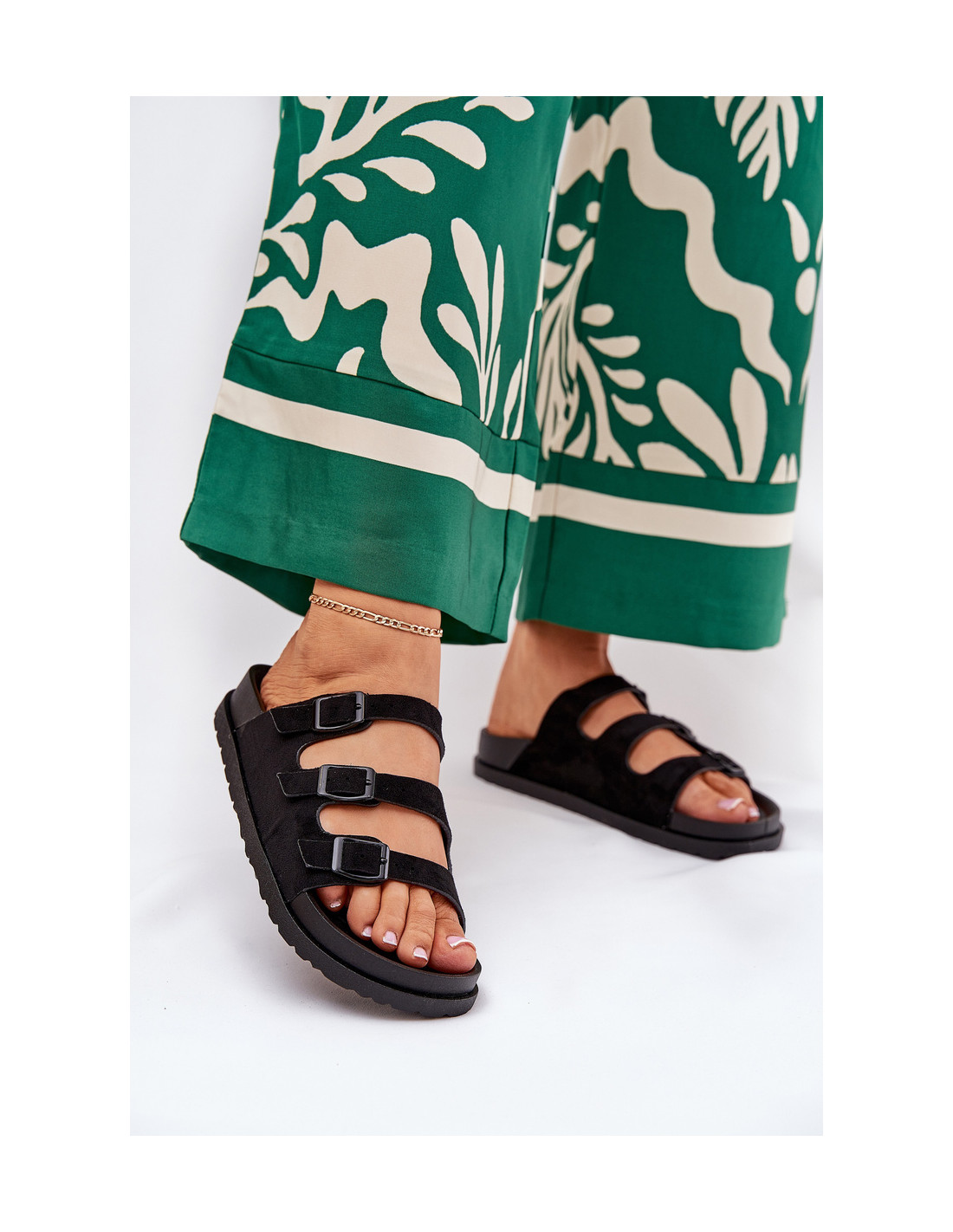 Moteriškos šlepetės su petnešėlėmis ir sagtimis Juoda Uliri