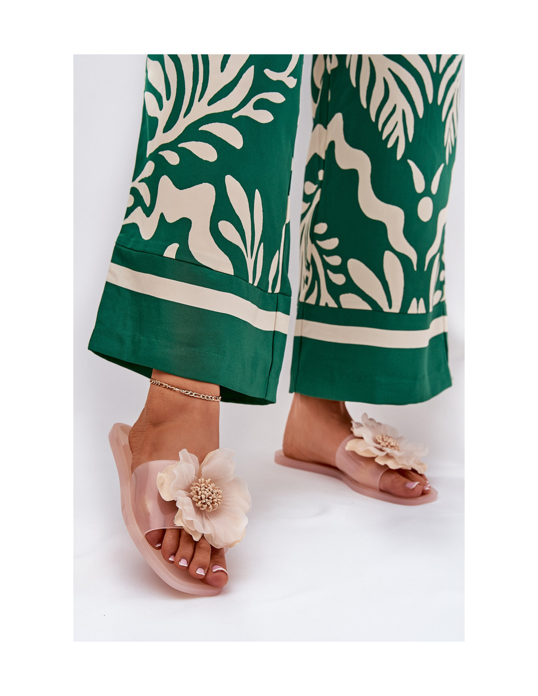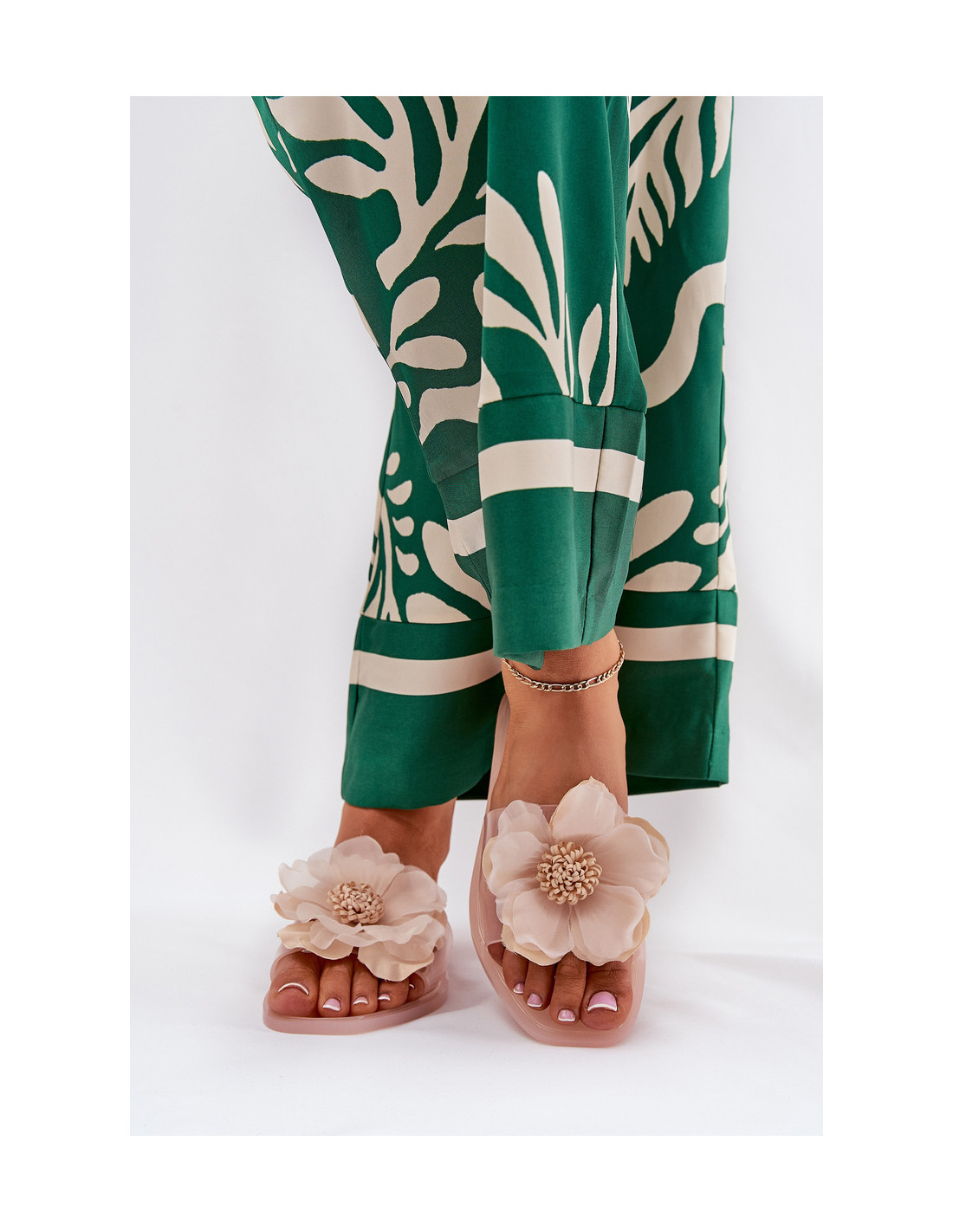 Stilingos moteriškos šlepetės su permatomu viršumi, išsiskiriančios lengvumu ir modernia išvaizda. Ant plokščio pado jie suteikia kasdienį komfortą. Batų priekį puošia žavinga dirbtinė gėlė, kuri suteikia subtilaus moteriškumo ir gaivumo. Puikiai tinka vasaros dienoms, puikiai tinka prie lengvų suknelių, sijonų ar šortų, bet kokiam stiliui suteikia elegancijos ir gaivumo. Renkantis dydį, vadovaukitės dydžių lentele.