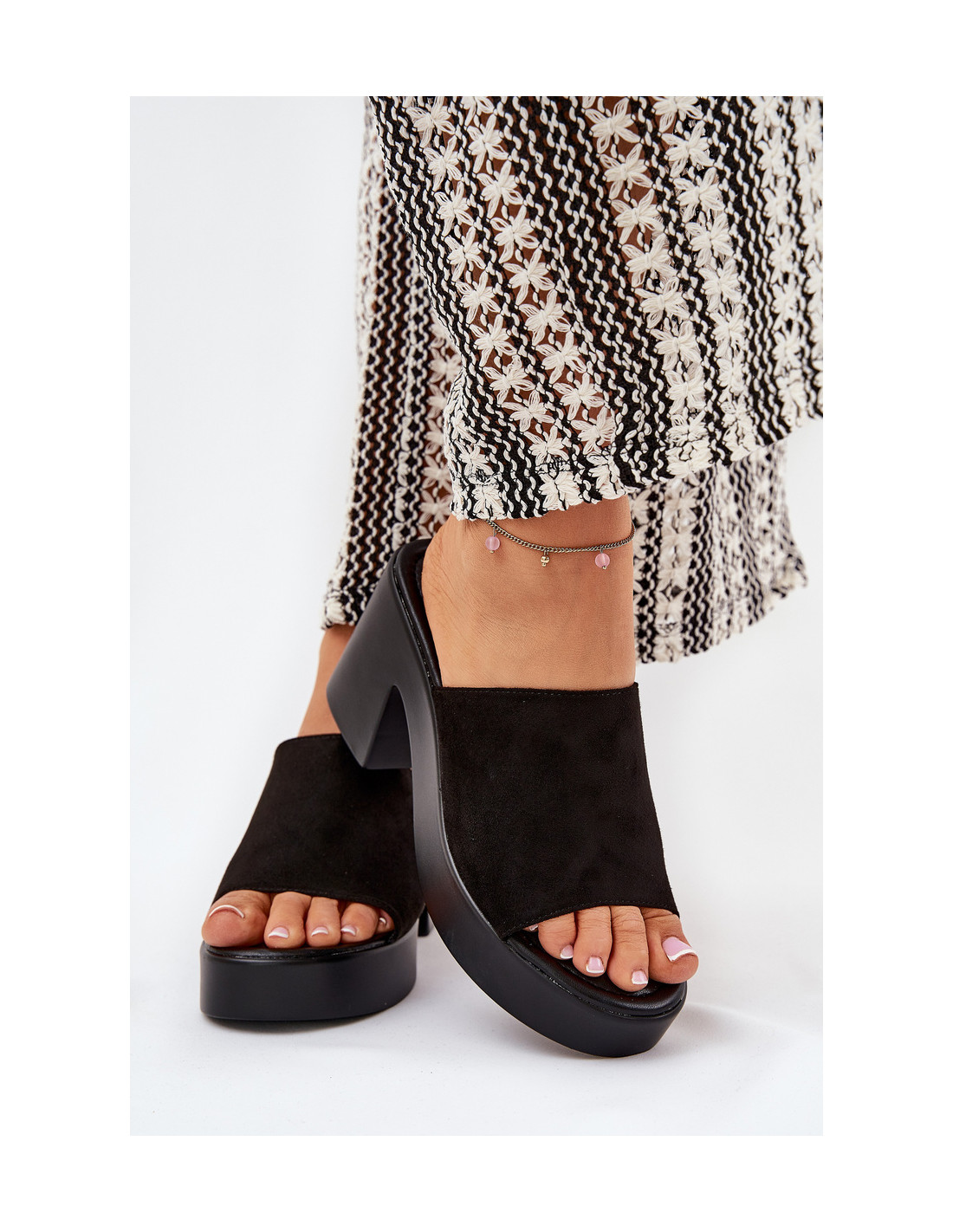 Moteriškos šlepetės ant kulno ir platformos Juoda Omeisa
