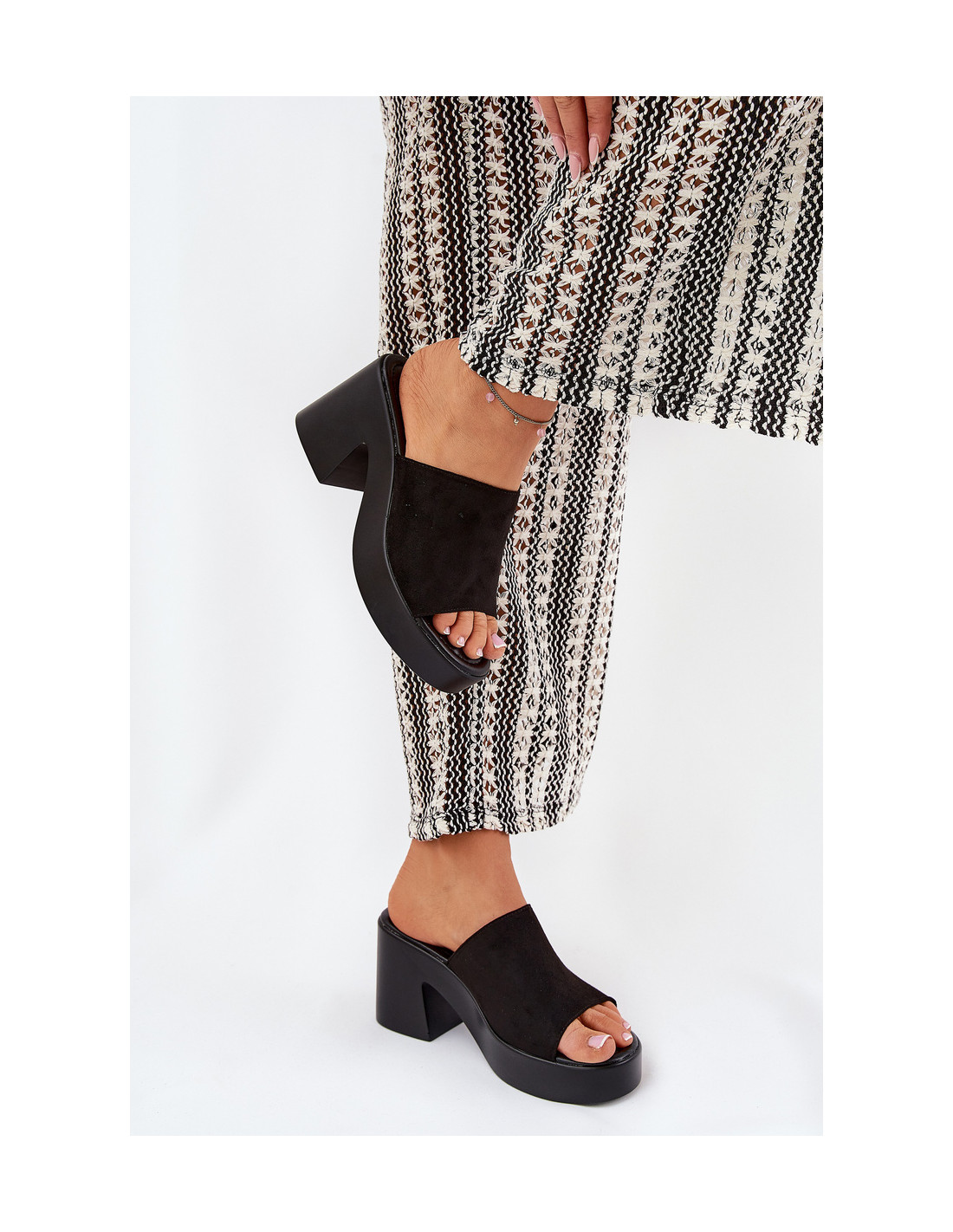 Moteriškos platforminės šlepetės su blokiniu kulnu, kurie derina komfortą ir madingą išvaizdą. Viršutinė dalis pagaminta iš ekologiškos zomšos, o minkštas vidpadis užtikrina komfortą visą dieną. Dėl klasikinio dizaino šie šlepetės puikiai dera prie daugelio vasaros stilių, bet kokiai išvaizdai suteikia elegancijos ir lengvumo. Puikiai tinka kasdienėms išvykoms ir ypatingoms progoms. Renkantis dydį, vadovaukitės dydžių lentele.