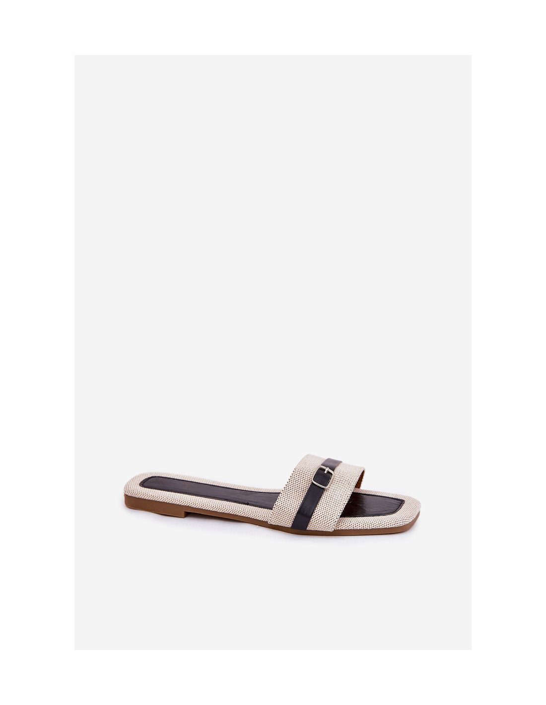 Moteriški plokšti šlepetės su dirželiu ir sagtimi smėlio-juodos spalvos Žilina