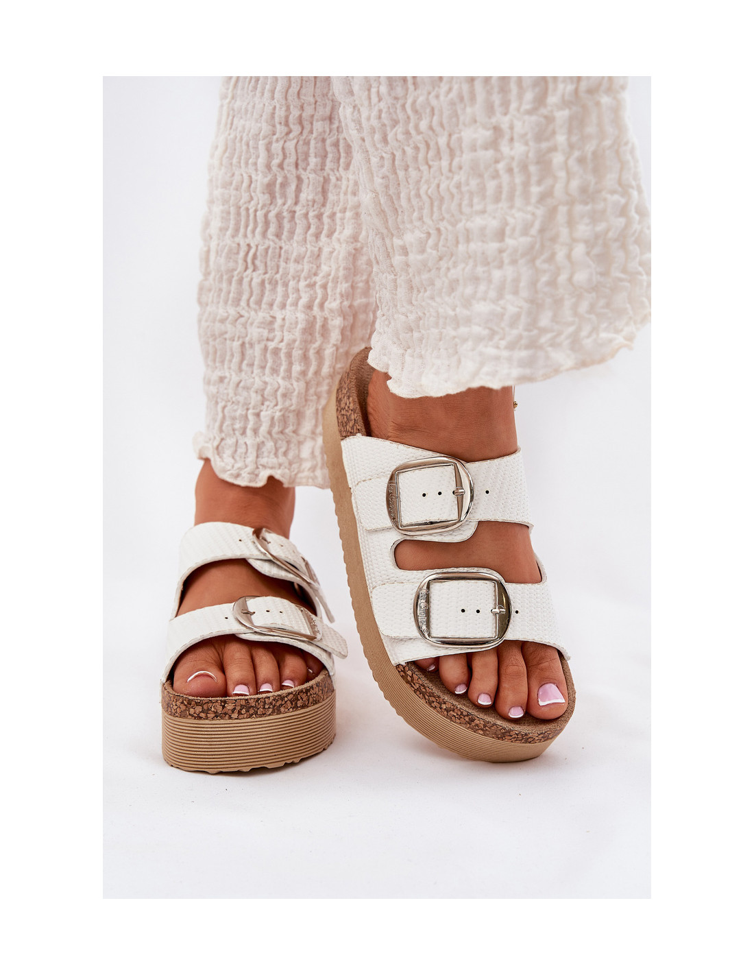 Moteriški „Lee Cooper“ prekės ženklo šlepetės, pastatytos ant didžiulės platformos, yra patogumo ir madingos išvaizdos derinys. Jie turi du reguliuojamus dirželius su sagtimis, kurios puikiai priglunda prie pėdos. Kontūruotas vidpadis suteikia komfortą visą dieną, užtikrindamas tinkamą amortizaciją. Šios šlepetės yra puikus pasirinkimas vasaros dienomis, puikiai tinka laisvalaikio stiliams, kuriuose funkcionalumas derinamas su elegantiška išvaizda. Renkantis dydį, vadovaukitės dydžių lentele.