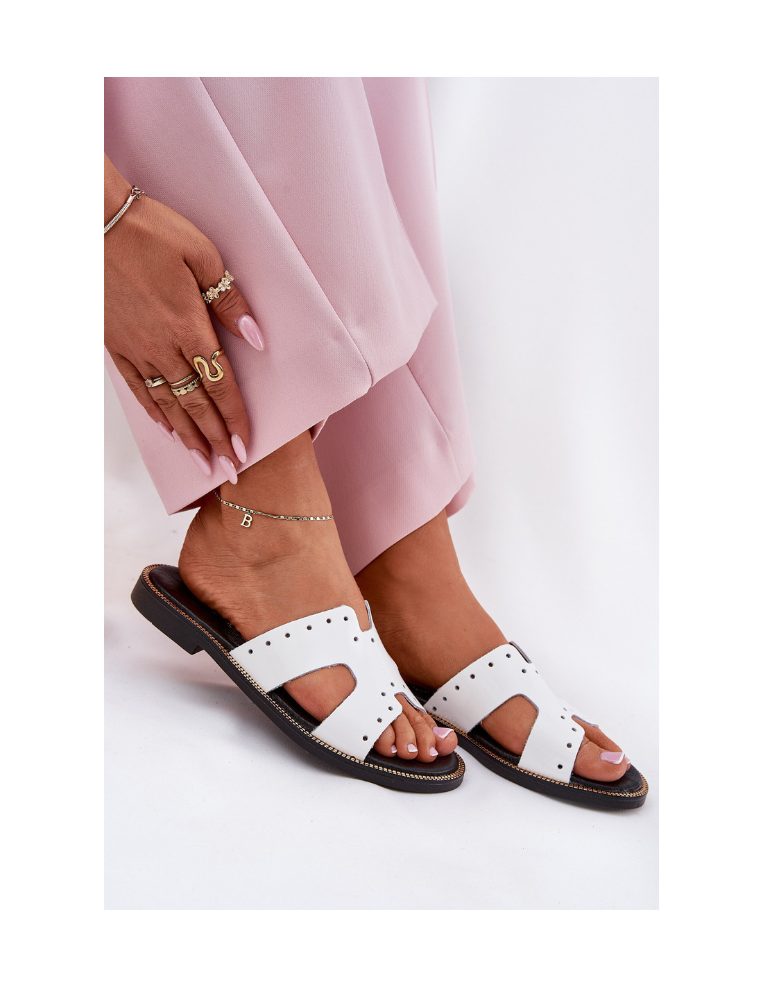 Moteriškos klasikinės šlepetės iš natūralios odos su išpjovomis. Ant plokščio kulno su dekoruotu padu. Šis modelis tikrai patiks kiekvienai moteriai, kuri vertina stilių ir patogumą. Minkštas odinis vidpadis leidžia patogiai dėvėti avalynę visą dieną. Renkantis dydį, vadovaukitės dydžių lentele.