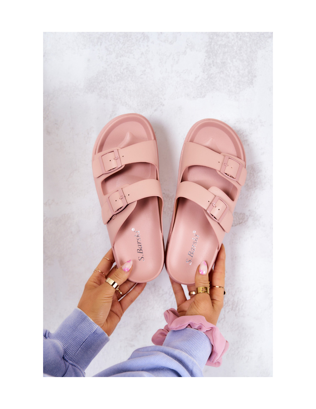 Užsegamos šlepetės iš guminės medžiagos. Jie montuojami ant lygaus, storesnio pado. Jie turi du reguliuojamus dirželius su sagtimi priekyje. Įrengtas profiliuotas įdėklas su logotipu. Su jais sukursite daugybę nuostabių vasaros stilių! Taip pat puikiai tiks namuose vietoj šlepečių. Jūs tikrai turėtumėte juos turėti! Renkantis dydį, naudokite dydžių lentelę.