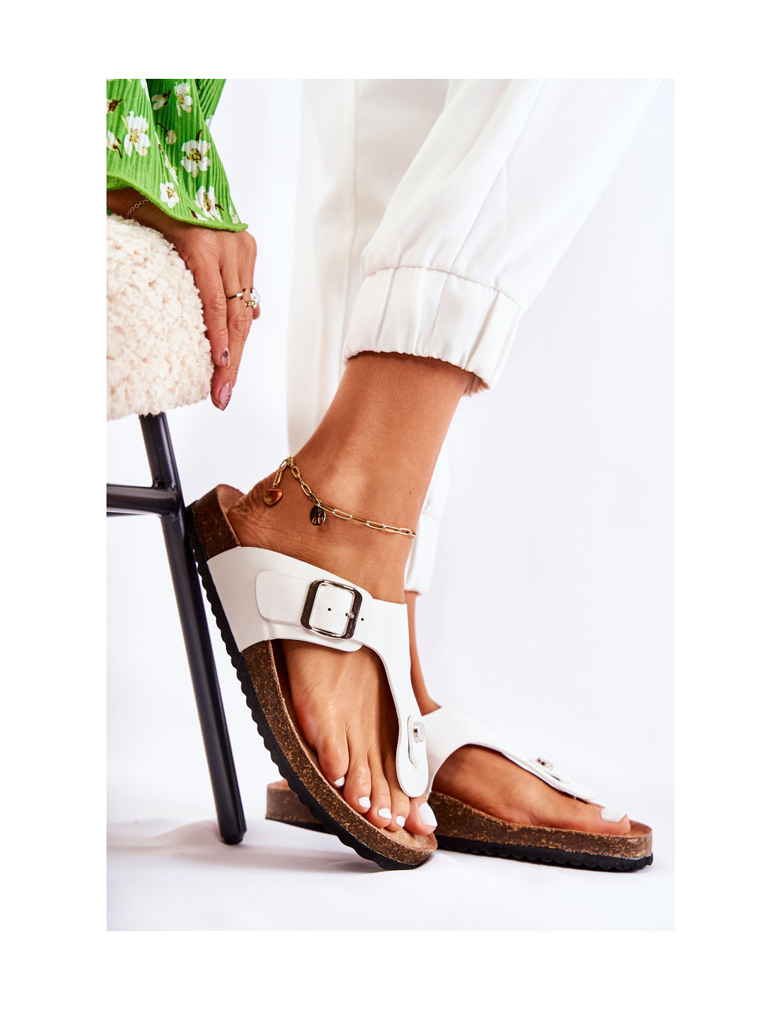 Moteriškos šlepetės ant kamščio baltumo Elina