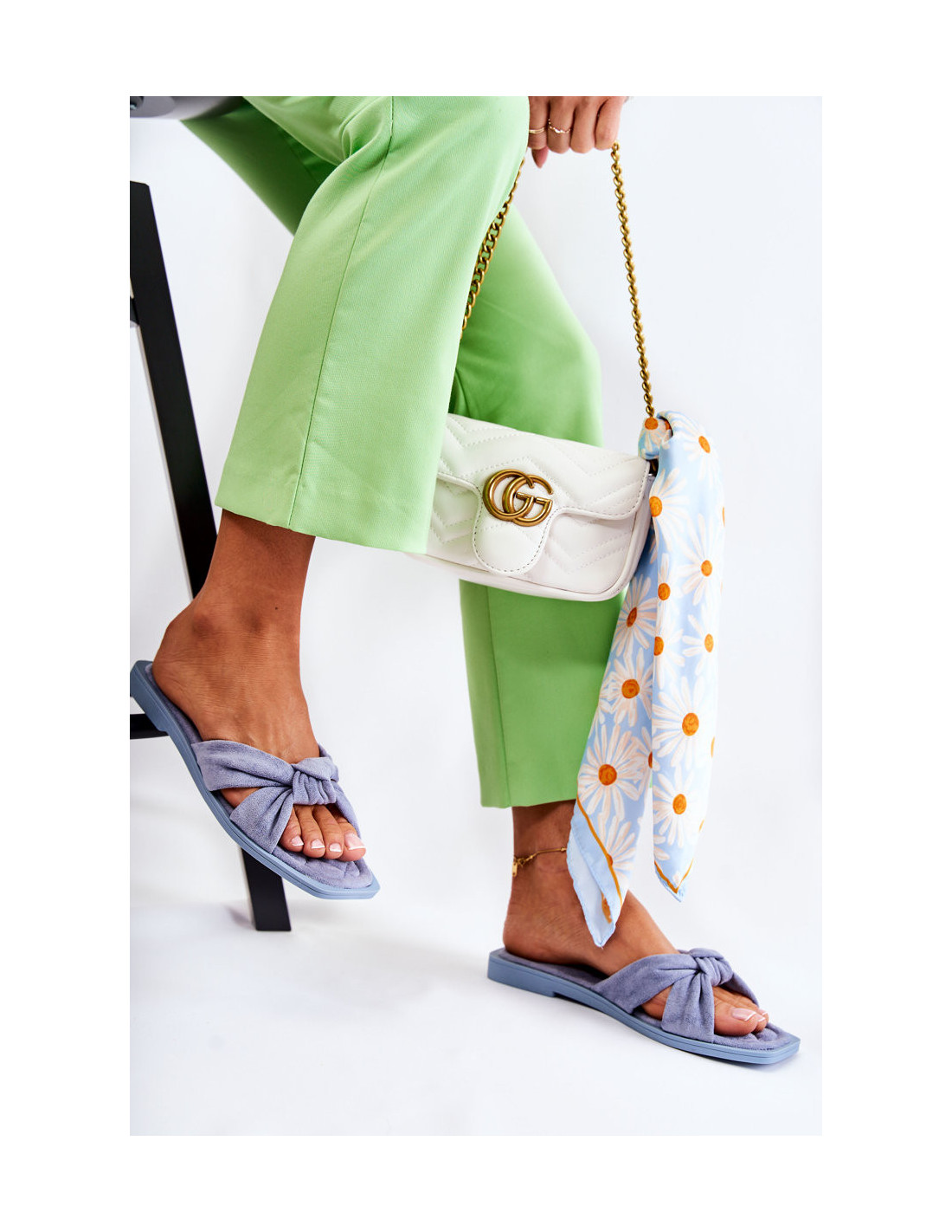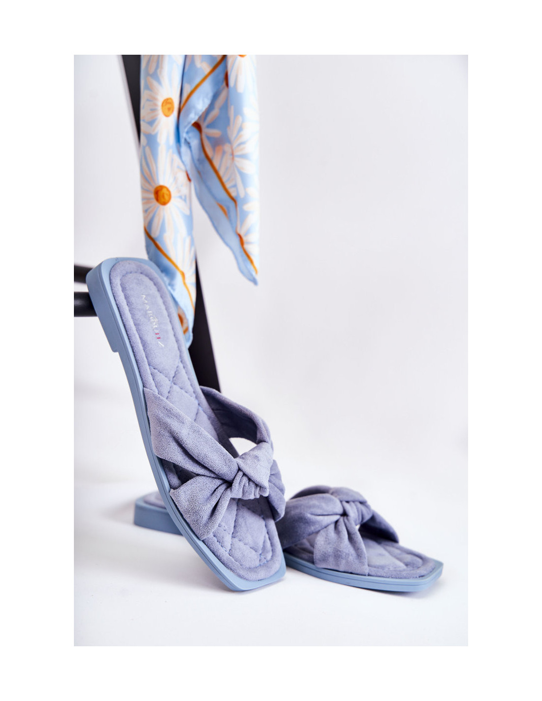 Klasikinės moteriškos šlepetės pagamintos iš ekologiškos zomšos, malonios liesti. Atvartų juostelės susijungia priekyje ir sudaro mazgą. Vidpadis dygsniuotas, taip pat pagamintas iš ekologiškos zomšos. Šlepetės ant plokščio kulno. Modelis, kuris puikiai tiks kasdienei veiklai, pvz., apsiperkant ar vaikštant. Šios šlepetės turi atvirą, kvadratinį nosį. Renkantis dydį, naudokite dydžių lentelę.