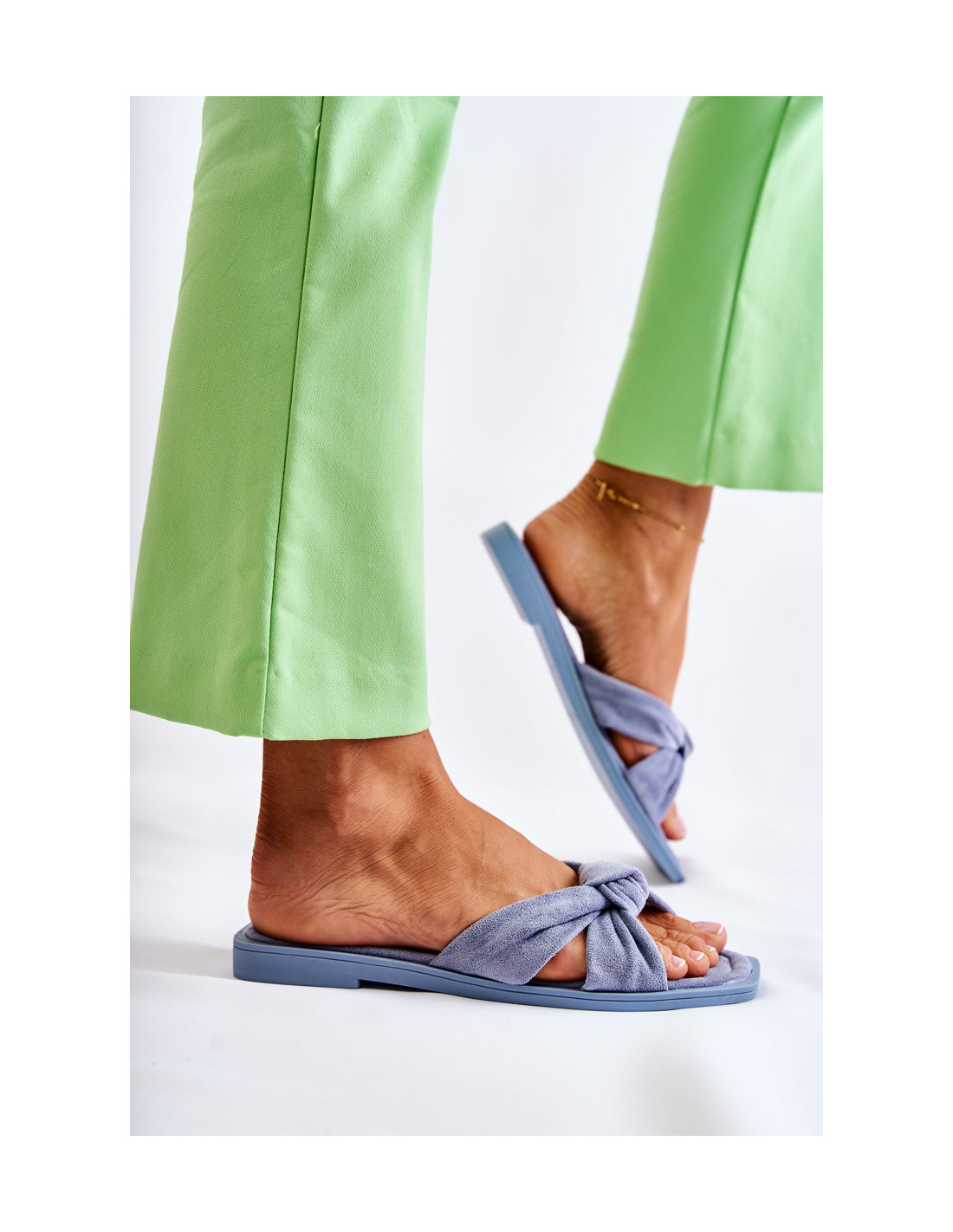 Moteriškos madingos zomšinės šlepetės Mėlynos spalvos Lorrie