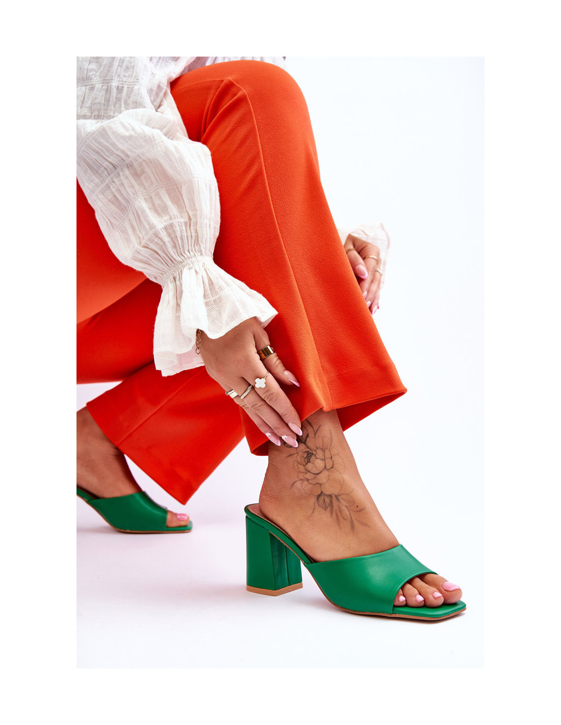 Klasikinio kirpimo moteriškos šlepetės. Šis modelis pagamintas iš eko odos. Šlepetės turi atvirą, kvadratinį pirštą. Vidpadis patogus ir pagamintas iš eko odos. Šlepetės buvo dedamos ant kulno stulpelio pavidalu. Puikiai tinka daugeliui stilizacijų karštomis dienomis! Rinkdamiesi dydį žiūrėkite dydžių lentelę.