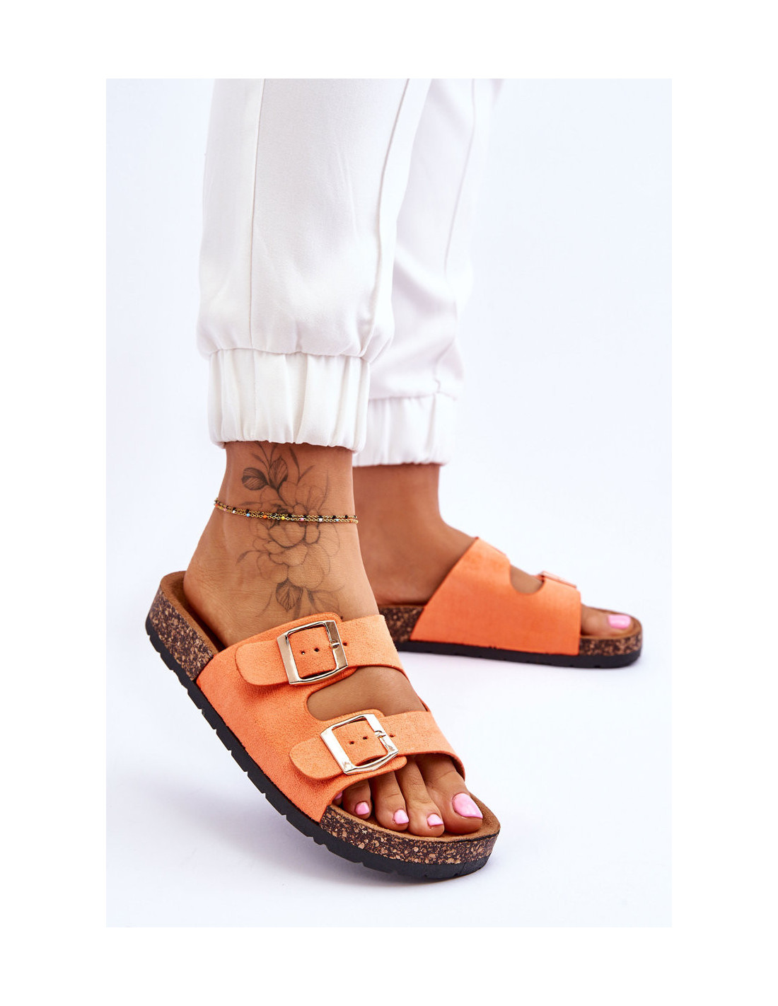 Moteriškos šlepetės ant kamštinio pado, oranžinės spalvos Cortina