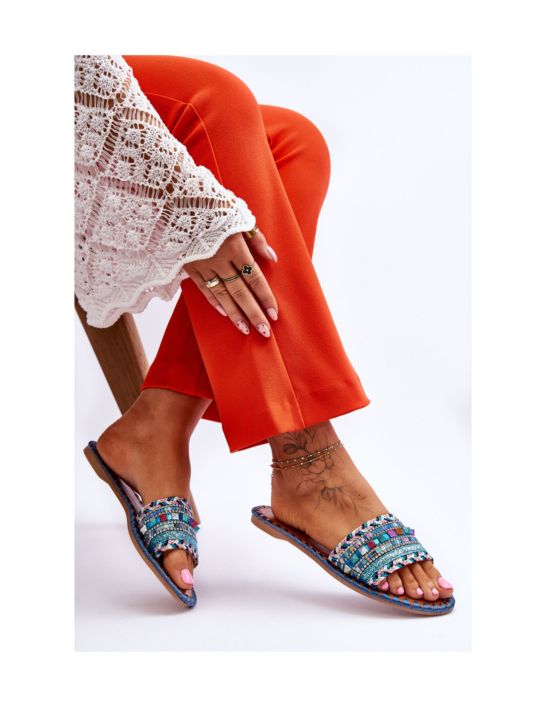 Moteriškos puoštos šlepetės Mėlynos spalvos Bellisa