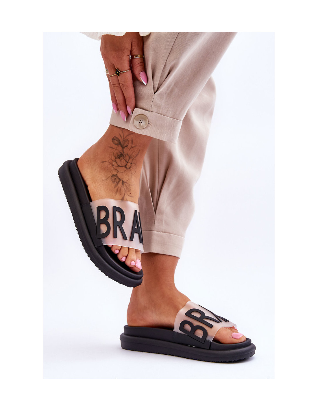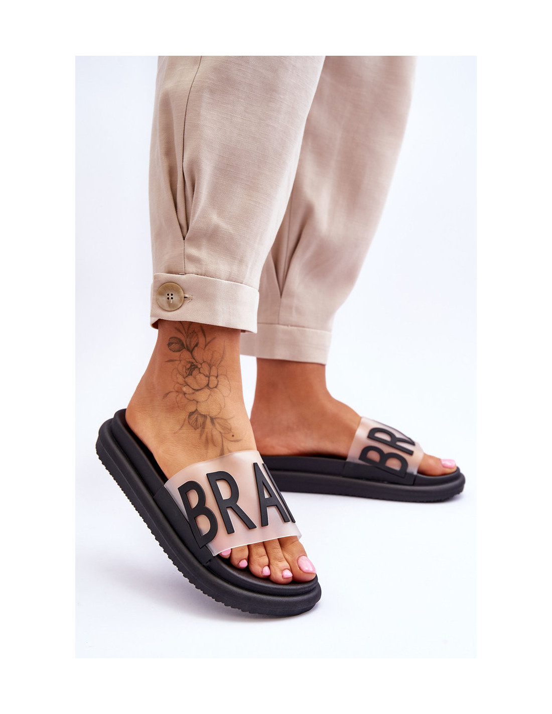 Moteriškos šlepetės su platforma Juodos Drąsos