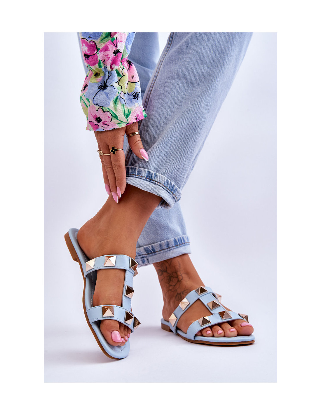 Moteriškos šlepetės su didelėmis smeigėmis, mėlynos spalvos Mercure