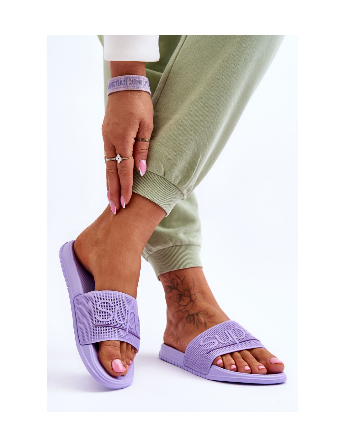 Šios moteriškos šlepetės yra puikus modelis karštomis dienomis! Jie itin lengvi ir patogūs. Juostelė su užrašu pagaminta iš guminės medžiagos, o įdėklas su platforma iš putplasčio. Šis modelis yra klasikinis užsegamas. Šlepetės buvo dedamos ant subtilios platformos. Jie taip pat puikiai tiks kaip šlepetės baseine. Rinkdamiesi dydį žiūrėkite dydžių lentelę.