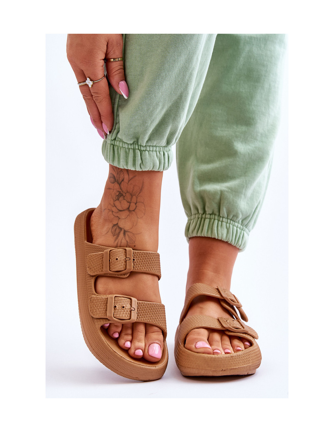 Itin lengvos moteriškos šlepetės, komplektuojamos ant platformos, pagamintos iš putplasčio medžiagos. Jie turi reguliuojamus dirželius, užsegamus sagtimis. Šis modelis yra klasikinis užsegamas. Šlepetės taip pat puikiai tinka kaip avalynė baseine. Būtinai peržiūrėkite ir kitus moteriškų šlepečių modelius! Rinkdamiesi dydį, žiūrėkite dydžių lentelę.