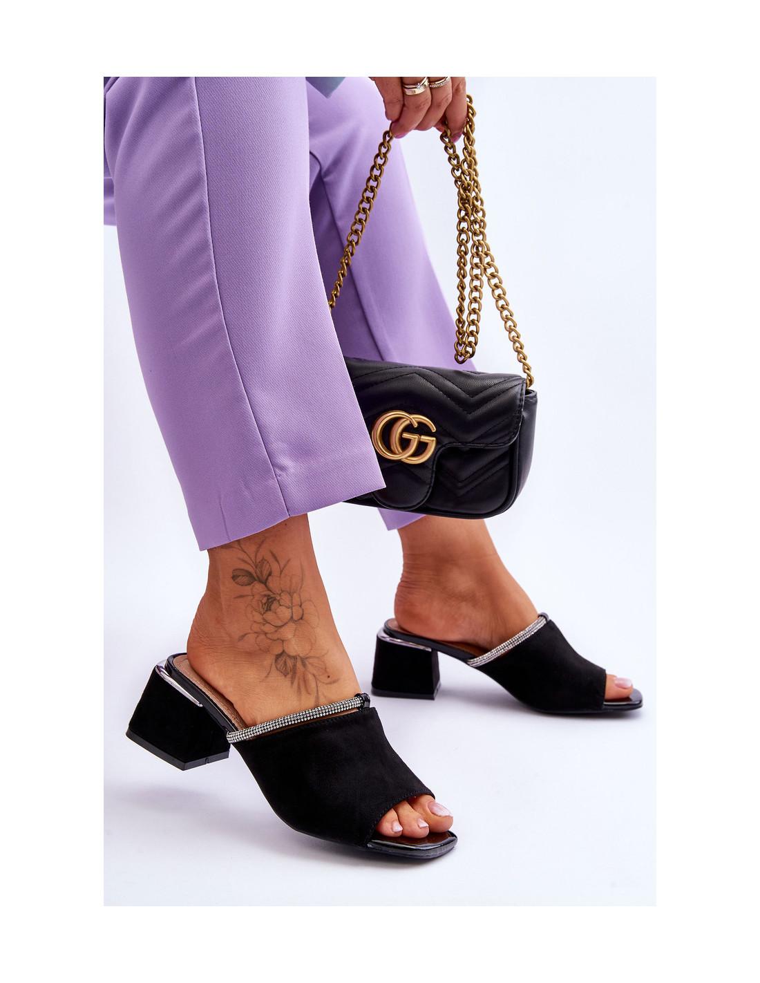 Itin madingos moteriškos šlepetės vasaros sezonu tikrai pasiteisins daugelyje situacijų! Jie pagaminti iš malonios liesti ekologiškos zomšos. Šlepetės turi įdėklą iš natūralios odos. Be to, jie buvo papuošti juostele su cirkoniais. Nustatyti ant kulno bloko pavidalu. Rinkdamiesi dydį, vadovaukitės dydžių lentele.