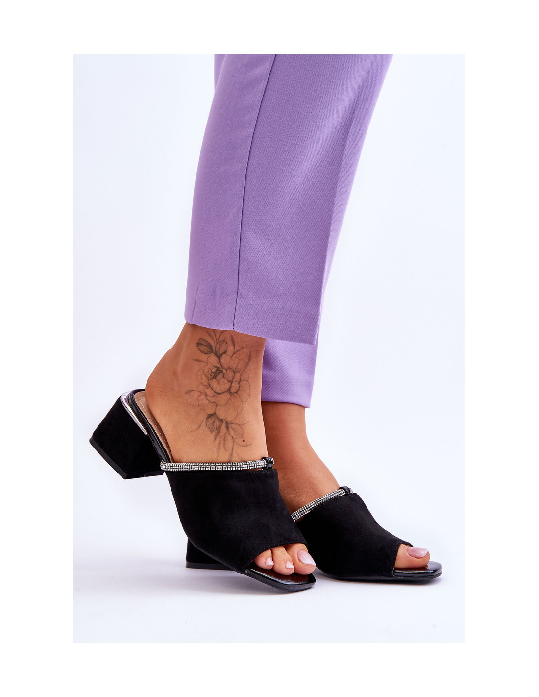Zomšinės aukštakulnės šlepetės S.Barski KV-612-2 Juodos