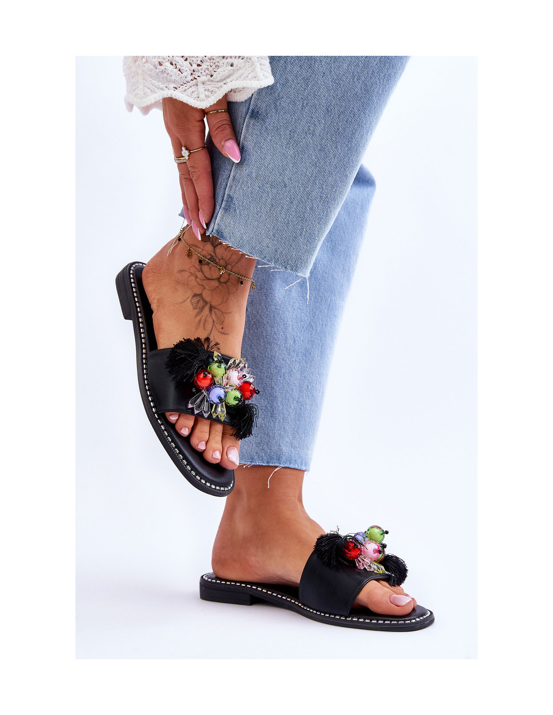 Šlepetės su dekoratyviniais karoliukais...