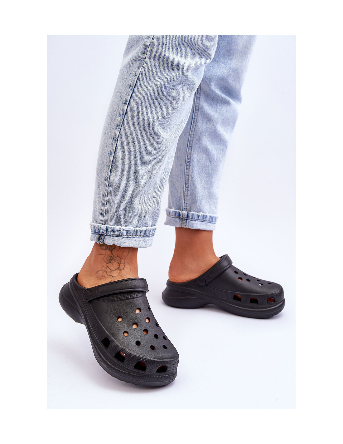 Putplasčio sandalai ant stambaus pado juodos spalvos „Katniss“.