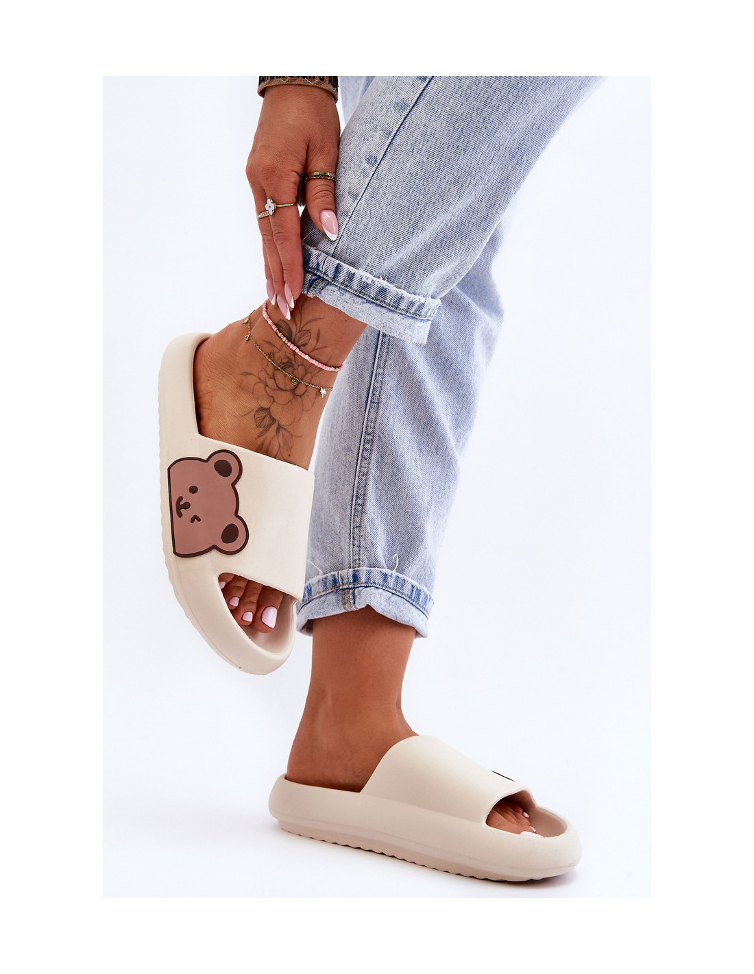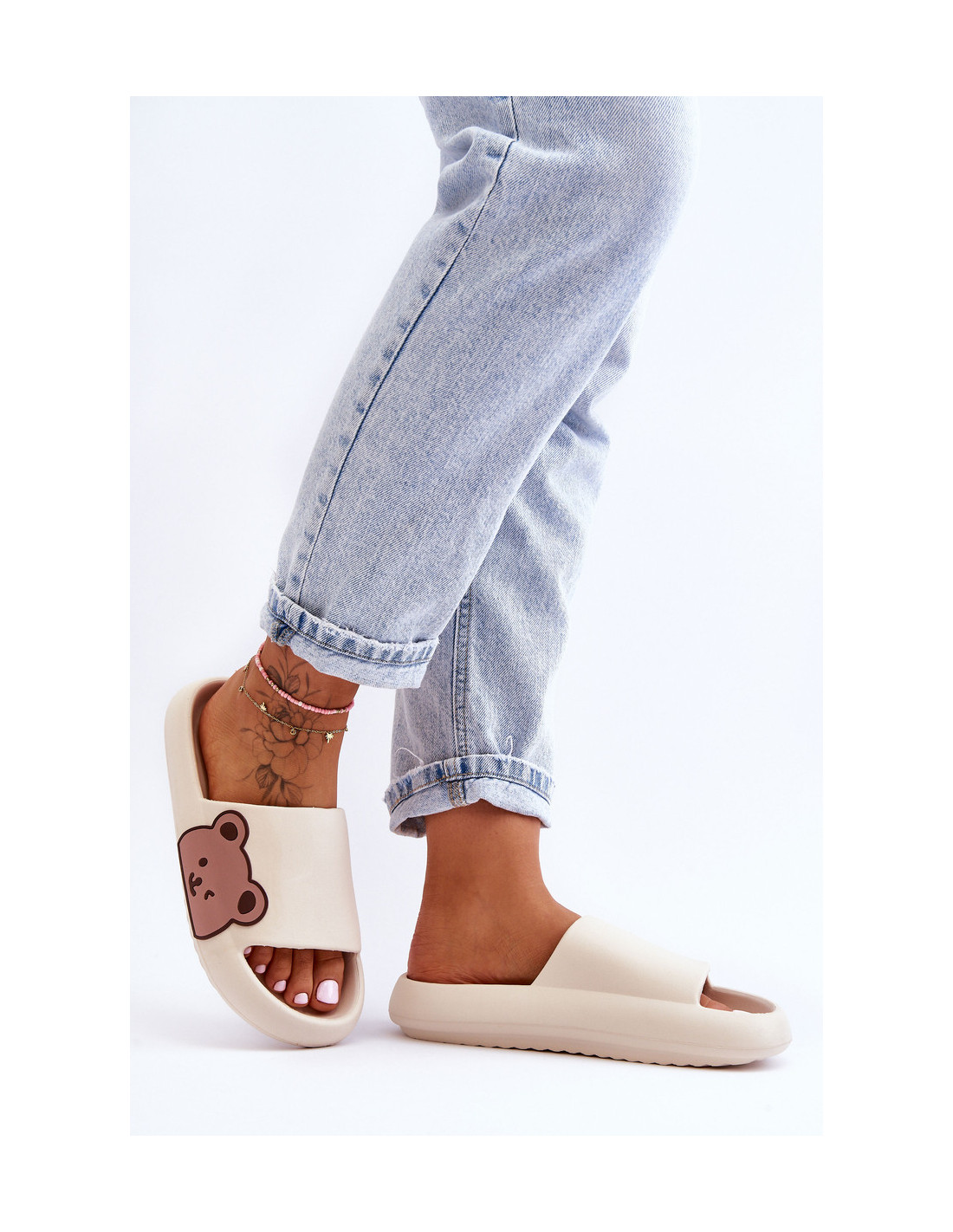 Moteriškos šviesios putplasčio šlepetės Bear Motif Beige Parisso
