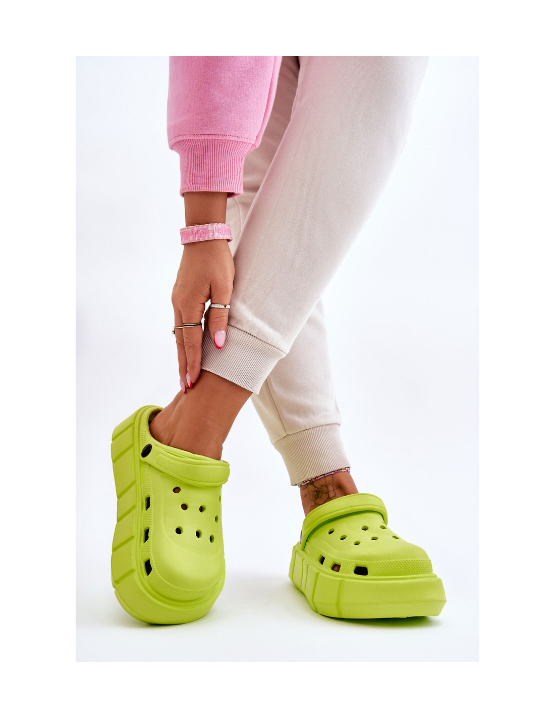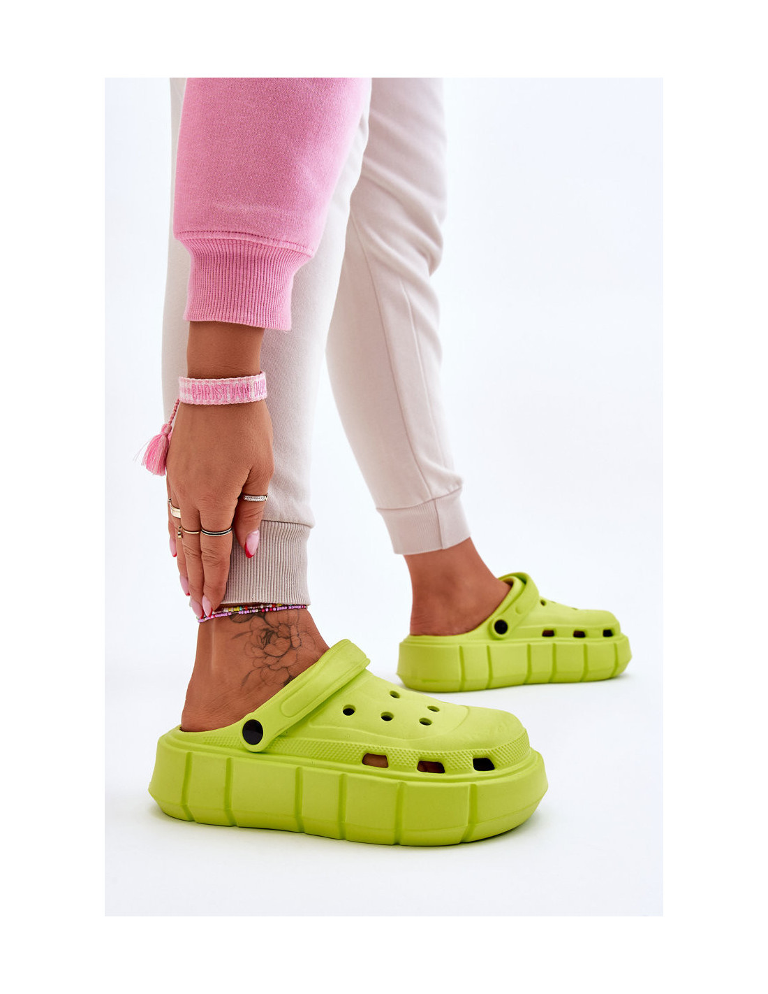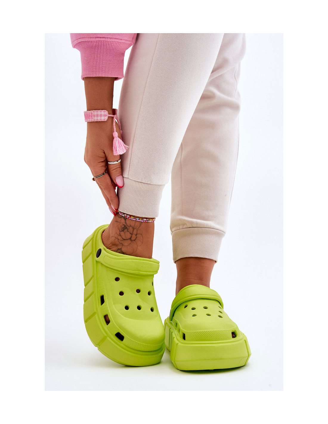 Moteriškos kroko stiliaus šlepetės pagamintos iš putplasčio. Kilnojamas dirželis neleidžia pėdai judėti. Batai buvo pastatyti ant didžiulės platformos. Idealus modelis darbui sode arba naudoti namuose vietoj šlepečių. Viršuje esančios skylutės leidžia tinkamai vėdinti avalynę, kuri puikiai tinka šiltesnėmis dienomis. Rinkdamiesi dydį, vadovaukitės dydžių lentele.