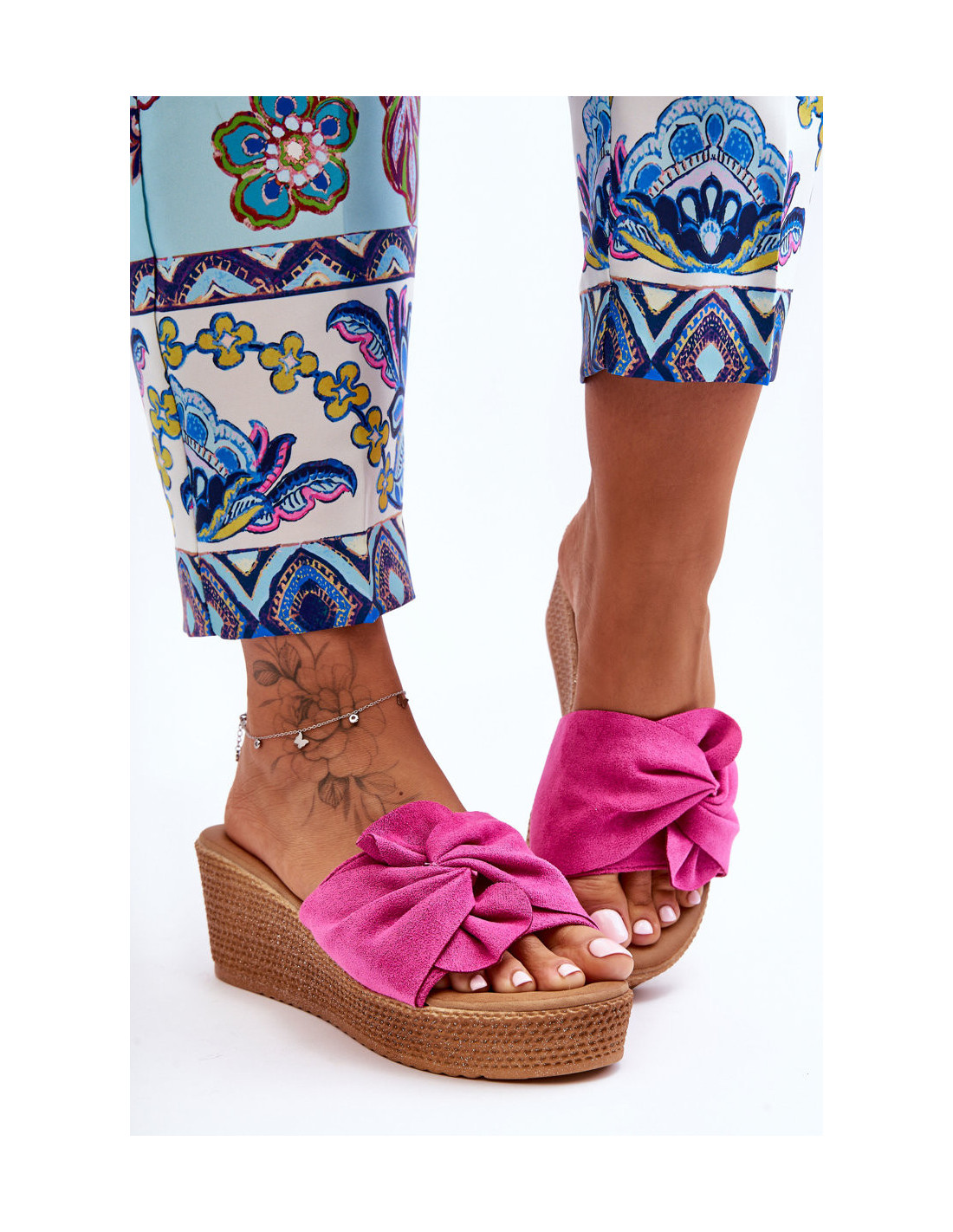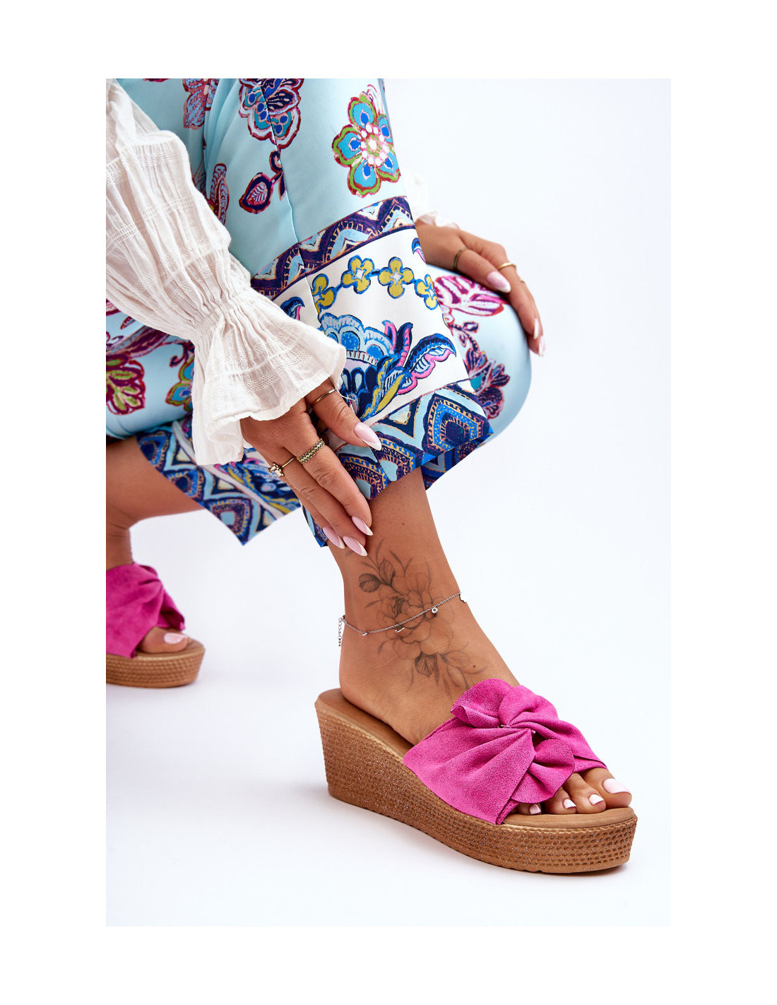 Moteriški sandalai buvo pagaminti iš minkštos ekologiškos zomšos. Jie turi minkštą ekologinės odos vidpadį. Sandalai buvo pastatyti ant storos platformos ir pleišto, papuošto blizgučiais. Šis neįtikėtinai patogus modelis turėtų būti jūsų! Sandalai puikiai tiktų karštoms dienoms! Renkantis dydį, vadovaukitės dydžių lentele.