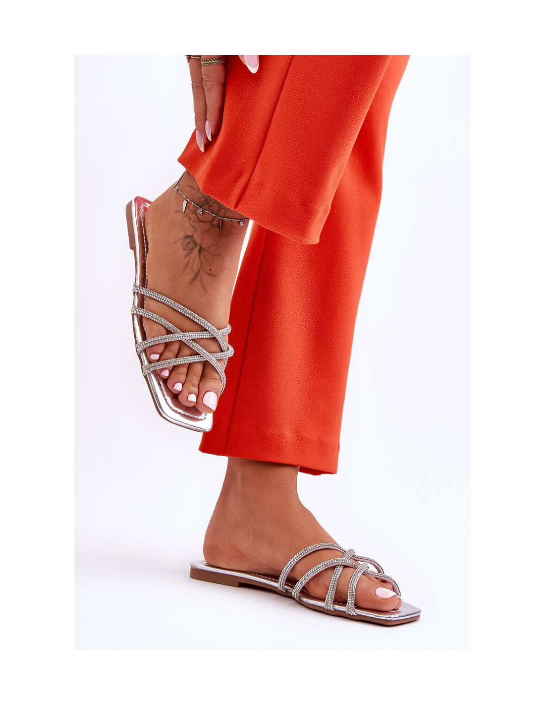 Moteriški sandalai su dirželiais su smeigtukais Sidabrinės spalvos Leomi